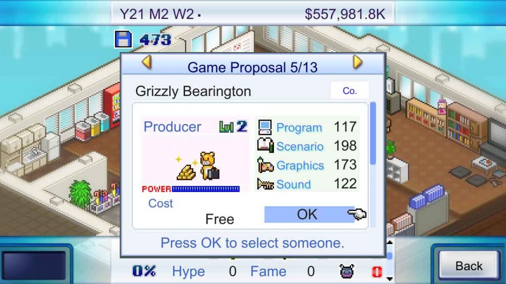 ในแง่ของรูปแบบการเล่น Game Dev Story ไม่ได้แตกต่างจากเวอร์ชันมือถือมากนัก และไม่มีการปรับปรุงองค์ประกอบด้านคุณภาพชีวิตอย่างมีนัยสำคัญ ที่ฉันพูดแบบนี้เพราะฉันเคยเล่นเกมนี้มาก่อนบนมือถือและบนพีซีด้วย โดยพื้นฐานแล้วมันจึงเป็นเกมผู้ประกอบการพัฒนาเกม (คล้ายกับแฟรนไชส์ผู้ประกอบการ) ซึ่งเป็นประเภทที่นักพัฒนาเกมอินดี้มักจะขายสำเนามากกว่าบริษัท AAA เนื่องจากราคาที่เข้าถึงได้ง่ายกว่า มันเป็นเกมง่ายๆ ที่คุณเปิดสำนักงานพัฒนาเกม และแน่นอนว่าคุณมีเงินและสิ่งปลูกสร้างอยู่แล้ว ทำไม เพราะโดยพื้นฐานแล้วคุณมาจากครอบครัวที่ร่ำรวย สิ่งหนึ่งที่ฉันชื่นชมคือเกมได้รับอิทธิพลจากการพัฒนาเกมของญี่ปุ่นอย่างไร โดยคำนึงถึงปัจจัยต่างๆ เช่น การอัปเดตคอนโซล ตลาดปัจจุบัน และคอนโซลใดบ้างที่ต้องพัฒนาเกมเพื่อสร้างผลกำไร