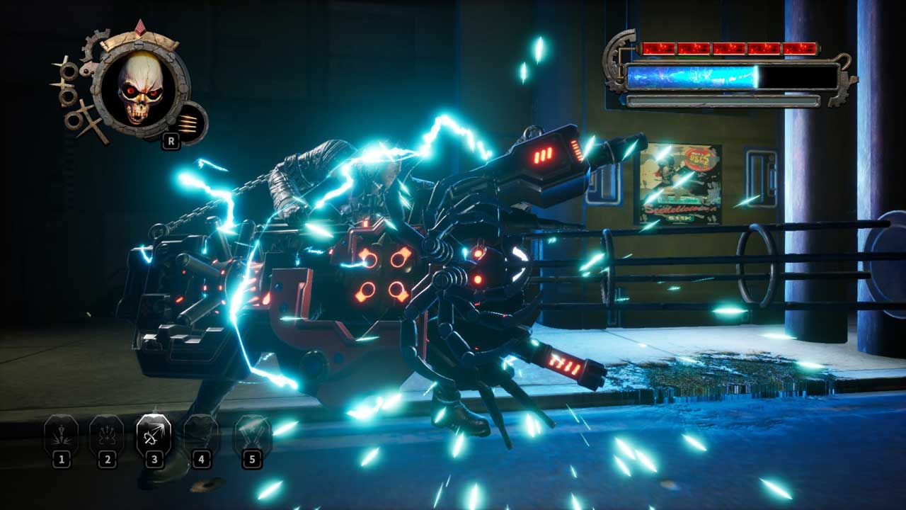 ตัวเอกของเรากำจัดศัตรูหลายร้อยคนด้วยปืนพกของเขา โจมตีพวกเขาที่หัวด้วยโลงศพที่กล่าวมาข้างต้น และยังใช้ความสามารถพิเศษหลายอย่าง เช่น กระสุนระเบิดขนาดยักษ์พร้อมเอฟเฟกต์พื้นที่ ในความเป็นจริง Grave สามารถใช้โลงศพของเขาเพื่อดึงศัตรูเข้ามาหาเขาด้วยตะขอเพื่อใช้เป็นเกราะป้องกัน และเขายังสามารถขว้างพวกมันได้อีกด้วย