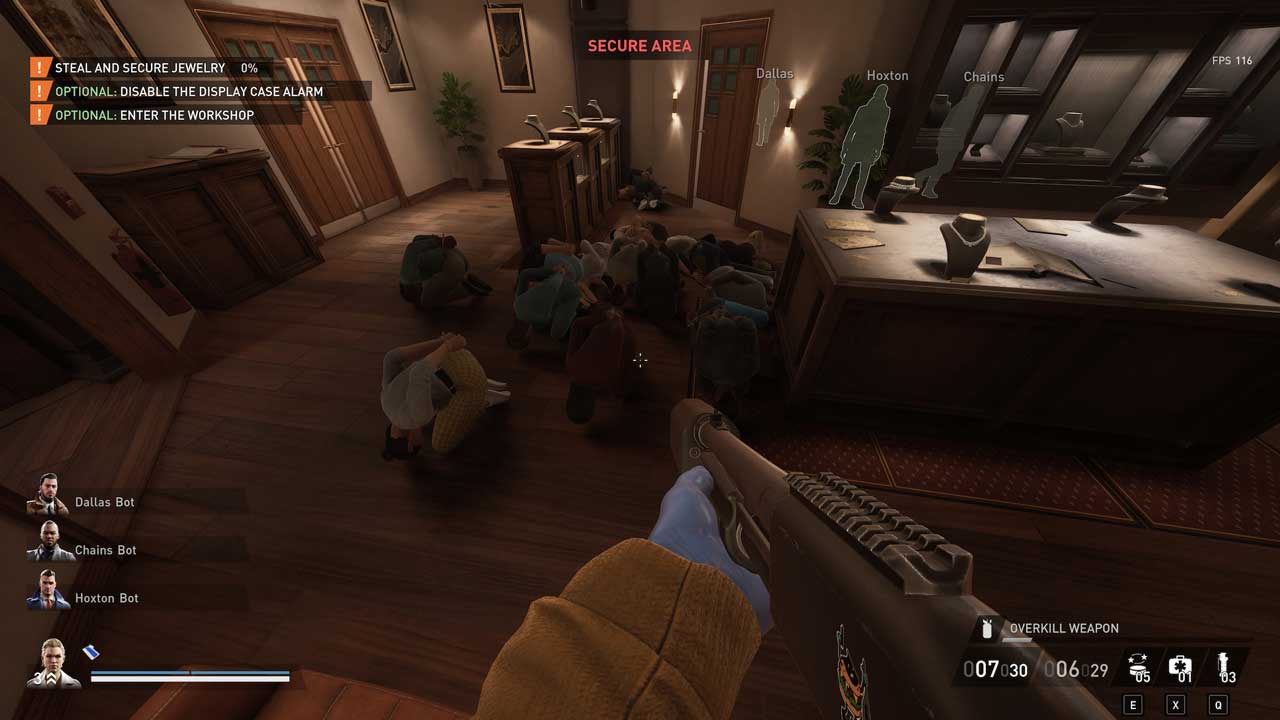 อินเทอร์เฟซผู้ใช้โดยทั่วไปไม่ดี การตั้งค่าดูดี แต่เมนูส่วนใหญ่ดูสับสนและเกะกะ ไม่มีคำอธิบาย การตั้งค่ามีช่วงกว้างแต่ไม่สามารถปรับได้อย่างละเอียด และการเปลี่ยนแปลงอื่นๆ อีกมากมายจะขัดแย้งกันโดยพลการเมื่อเทียบกับ PD2 อาวุธหลักและอาวุธรองถูกวางรวมกันในร้านโดยไม่มีความแตกต่างที่ชัดเจน ปัญญาประดิษฐ์ของตำรวจก็ดีขึ้นกว่าเดิมมาก และมีพฤติกรรมที่เป็นธรรมชาติและเป็นที่ยอมรับ น่าเสียดายที่สิ่งนี้ใช้ไม่ได้กับเพื่อนของคุณ และพวกเขาก็เป็นเหมือนรูปปั้นที่คุณไม่สามารถไว้วางใจได้เลย กราฟิกและเสียงได้รับการปรับปรุงให้ดีขึ้นอย่างไม่ต้องสงสัยจาก PD2 เพื่อให้มีการปรับปรุงด้านกราฟิกที่เหนือกว่า PD2 อย่างมาก และทำงานได้อย่างราบรื่นมากบนฮาร์ดแวร์เดียวกัน แม้จะตั้งค่าแบบ Ultra ก็ตาม การออกแบบเสียงยังยอดเยี่ยมและเพลงประกอบก็ดี