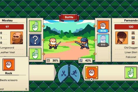 การต่อสู้ อย่างที่หลายๆ คนบอกว่าไม่ได้ดีนัก การต่อสู้ทั้งทางบกและทางทะเลโดยพื้นฐานแล้วจะเหมือนกัน ขึ้นอยู่กับว่าคุณมีอุปกรณ์อะไรสำหรับการต่อสู้แต่ละอย่าง แต่ละรอบคุณจะได้รับการ์ดที่ประกอบด้วยหิน กระดาษ กรรไกร หรือการ์ดอรรถประโยชน์อื่น ๆ (คุณต้องจัดสำรับด้วยตนเองจากเมนูหลบหนี) ขึ้นอยู่กับสัญชาตญาณของคุณ คุณอาจมองเห็นการ์ดของศัตรูบางใบได้ พวกเขา “พลิก” จากนั้นทั้งคู่เลือกไพ่สามใบจากมือเพื่อต่อสู้กัน เป็นไปได้ว่าพวกเขาจะไม่เลือกไพ่ “พลิก” เกมดังกล่าวยังมีช่องบันทึกสามช่อง แต่ฉันคิดว่าคุณต้องการมากกว่านี้ โดยเฉพาะอย่างยิ่งกับวิธีที่ RNG สามารถทำให้สิ่งต่าง ๆ พังได้ และ Game Over มักจะนำคุณกลับไปที่หน้าจอบันทึก