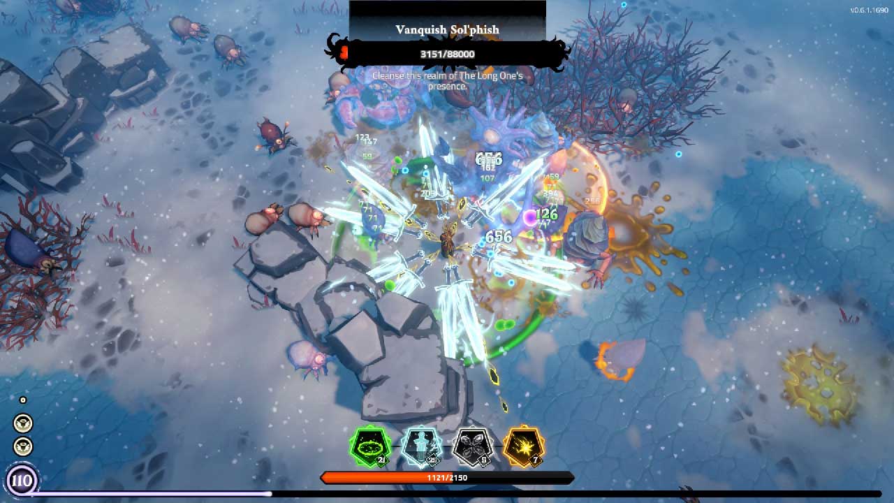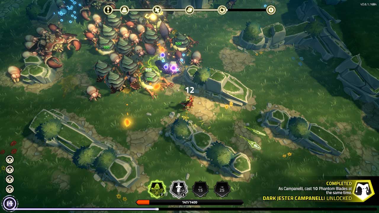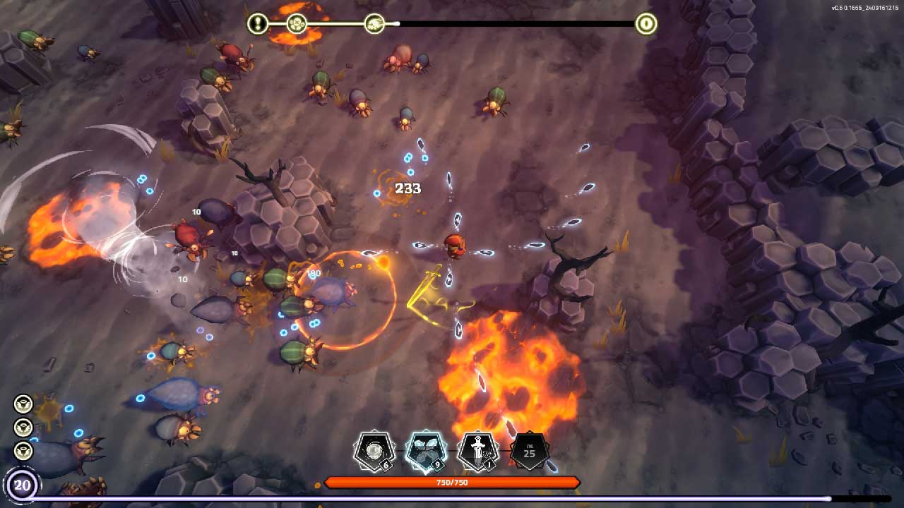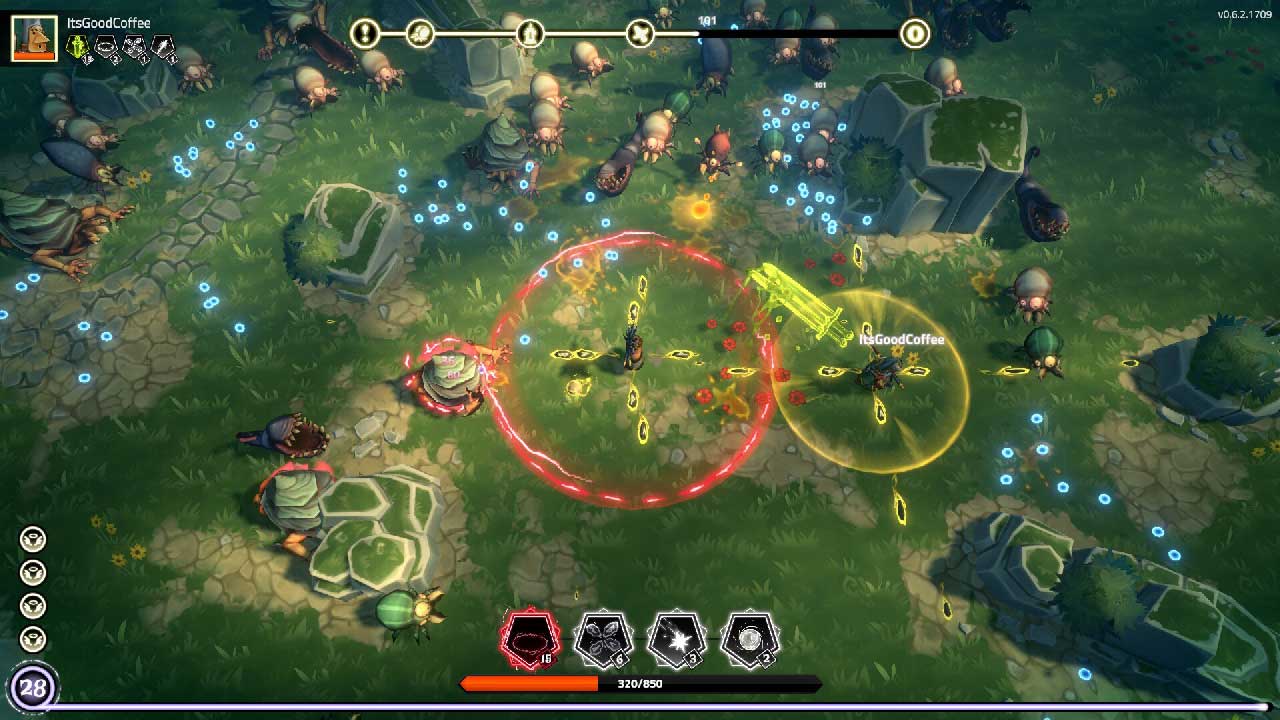 คุณเพิ่มเลเวลในเกมโดยการเก็บลูกกลมที่ดรอปจากมอนสเตอร์ และในแต่ละเลเวล คุณจะได้รับหนึ่งในสามตัวเลือกแบบสุ่มว่าจะเพิ่มพลังอะไร หลังจากผ่านด่านไปได้สองสามเลเวล คุณจะได้รับวัตถุประสงค์ที่เรียกว่า “ภารกิจ” ซึ่งหากคุณและทีมของคุณประสบความสำเร็จ คุณจะพัฒนาทักษะของคุณด้วยการอัพเกรดที่ไม่เหมือนใคร เช่น การยิงระเบิด การแยกโพรเจกไทล์ … และเอฟเฟกต์อื่น ๆ มากมาย . วัตถุประสงค์สุดท้ายคือบอสที่ทีมของคุณจะต้องสังหาร และเมื่อสังหารได้สำเร็จ คุณก็จะผ่านแผนที่ได้ คุณต้องทำงานร่วมกันและช่วยเหลือซึ่งกันและกัน แต่ระวังไฟที่เป็นมิตร เพราะด้วยคาถาคุณสามารถทำร้ายตัวเองได้