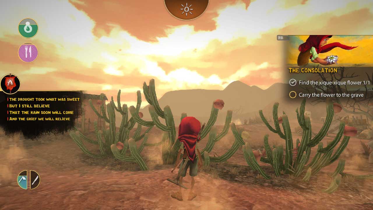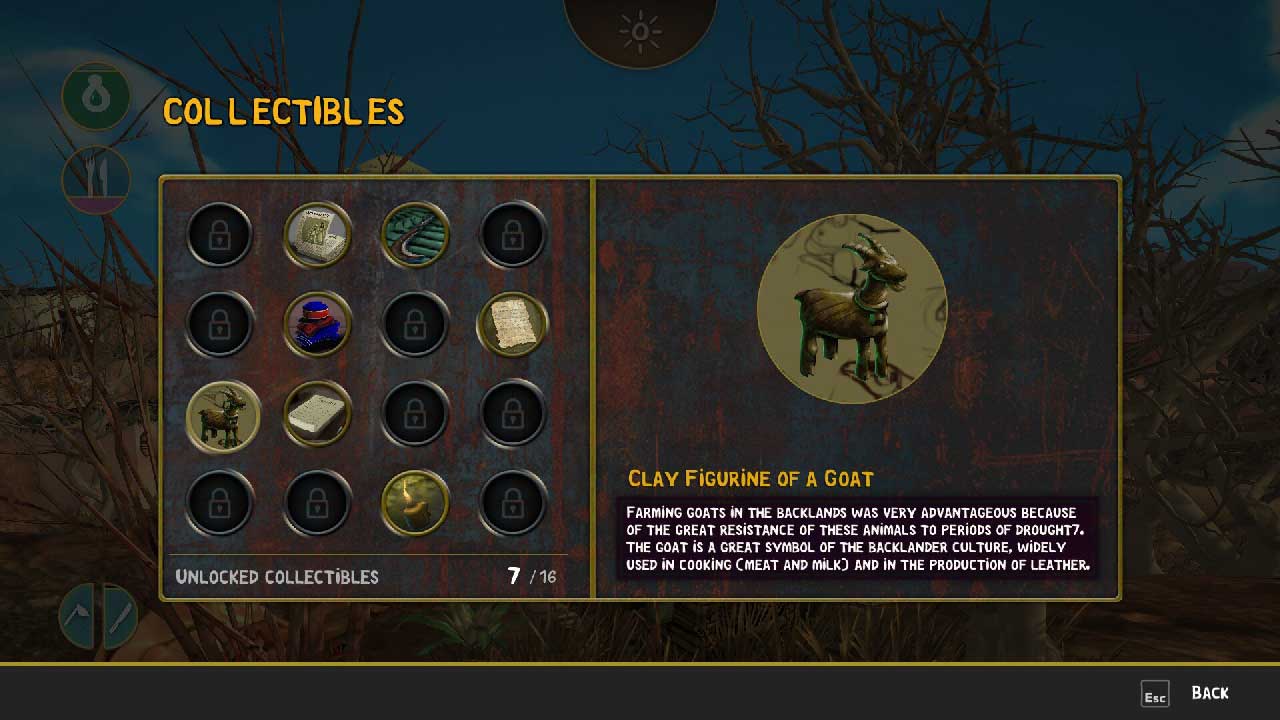 ในเกมมีทรัพยากรไม่เพียงพอ เมื่อคุณได้รับน้ำจนหมดในหุบเขาแล้ว นั่นเป็นน้ำเดียวที่คุณได้รับตลอดทั้งเกม หรือคุณสามารถรีดนมวัวที่กินเฉพาะกระบองเพชรบางประเภทที่คุณกินด้วยเหตุผลบางอย่างเท่านั้น หาไม่เจอ. ดังนั้นคุณจะตายมากขึ้นจากความหิวโหยและกระหาย ทุกอย่างในเกมนี้ยากและท้าทาย แต่ยังให้การต้อนรับและการต่อต้านอีกด้วย อีกสิ่งหนึ่งที่ควรค่าแก่การเน้นคือของสะสมที่พบในหีบที่กระจัดกระจายไปตามแต่ละด่าน คอลเลกชันเหล่านี้ไม่เพียงแต่อ้างอิงถึงสิ่งของต่างๆ แต่ยังรวมถึงขนบธรรมเนียมของภูมิภาคด้วย ซึ่งไม่ต้องสงสัยเลยว่าทำให้เกมการศึกษาและวัฒนธรรมสมบูรณ์ยิ่งขึ้น
