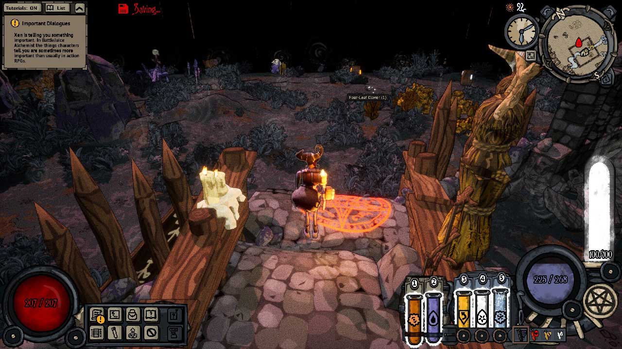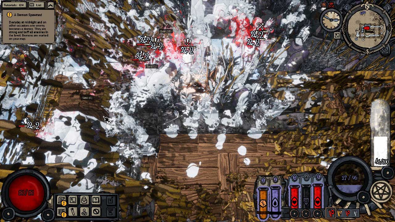 เมื่อพิจารณาว่าเกมนี้เป็นเพียงเกมระหว่างการพัฒนา ดังนั้นจึงยังมีเนื้อหาคร่าวๆ เล็กน้อยและเนื้อหายังมีจำกัดอยู่ในขณะนี้ แต่แก่นแท้ของเกมที่ยอดเยี่ยมก็อยู่ที่นั่นแล้ว หนึ่งในแง่มุมที่น่าสนใจของ BattleJuice Alchemist ก็คือแนวทางการเล่นแร่แปรธาตุและการต่อสู้ การทดลองใช้ขวดยาแบบต่างๆ ร่วมกัน (ที่คุณเลือกแบบสุ่ม) เพื่อให้เหมาะกับสไตล์การเล่นส่วนตัวของคุณจะมีประโยชน์มาก คุณสามารถมีส่วนร่วมในการต่อสู้ระยะประชิดโดยที่คุณสามารถควบคุมสถานการณ์ได้มากขึ้น เพราะคุณจะต้องเผชิญหน้ากับศัตรูเพียงคนเดียวเท่านั้น และคุณไม่จำเป็นต้องควบคุมการเคลื่อนไหวของตัวละครของคุณ ในการต่อสู้จากบนลงล่าง วิ่งไปรอบๆ และลากหรือแช่แข็งศัตรูในขณะที่คุณขว้างระเบิดใส่พวกเขา