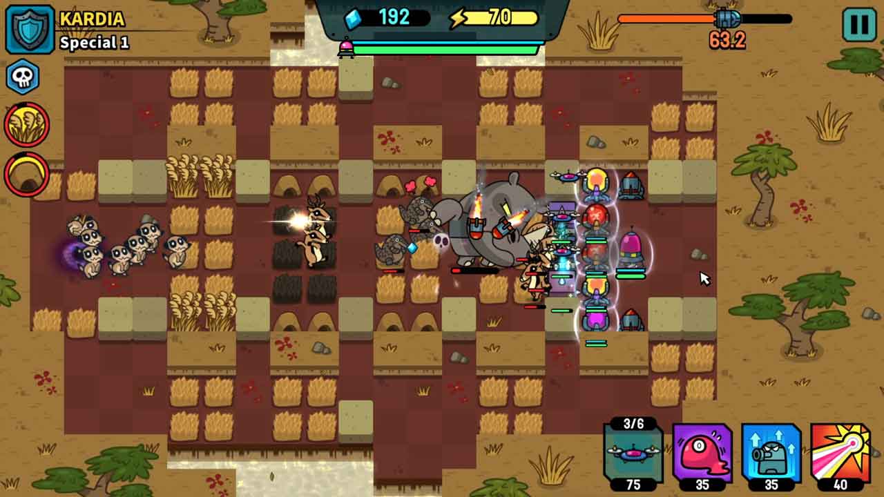 ขั้นตอนของเกมนี้สั้นมากและใช้เวลาเพียงไม่กี่นาทีในการทำให้เสร็จ รูปแบบการเล่นรวดเร็วและลื่นไหลมาก และมีเวลาไม่มากในการคิด และเช่นเดียวกับเกมอื่น ๆ ในประเภทนี้ คุณต้องดำเนินการอย่างรวดเร็ว บางครั้งการสร้างหอคอยที่สามารถโจมตีศัตรูได้ก็เป็นสิ่งที่คุณต้องการ คุณต้องใช้กลยุทธ์พิเศษในแต่ละด่านเพื่อที่จะชนะ ในตอนเริ่มเกม คุณเล่นด้วยความยาก Wild ซึ่งไม่ใช่ปัญหาแต่อย่างใด และคุณสามารถเพลิดเพลินไปกับประสบการณ์การเล่นในระดับความยากนี้ได้ หลังจากเสร็จสิ้นด่าน คุณจะไปยังแผนที่ถัดไปและคุณต้องวางกลยุทธ์ใหม่อีกครั้ง แน่นอน แม้แต่ความยากมาตรฐานก็ยังรู้สึกแย่ และฉันคิดว่ามาตรฐานคือความยากที่คุณสามารถเล่นจนจบเกมได้