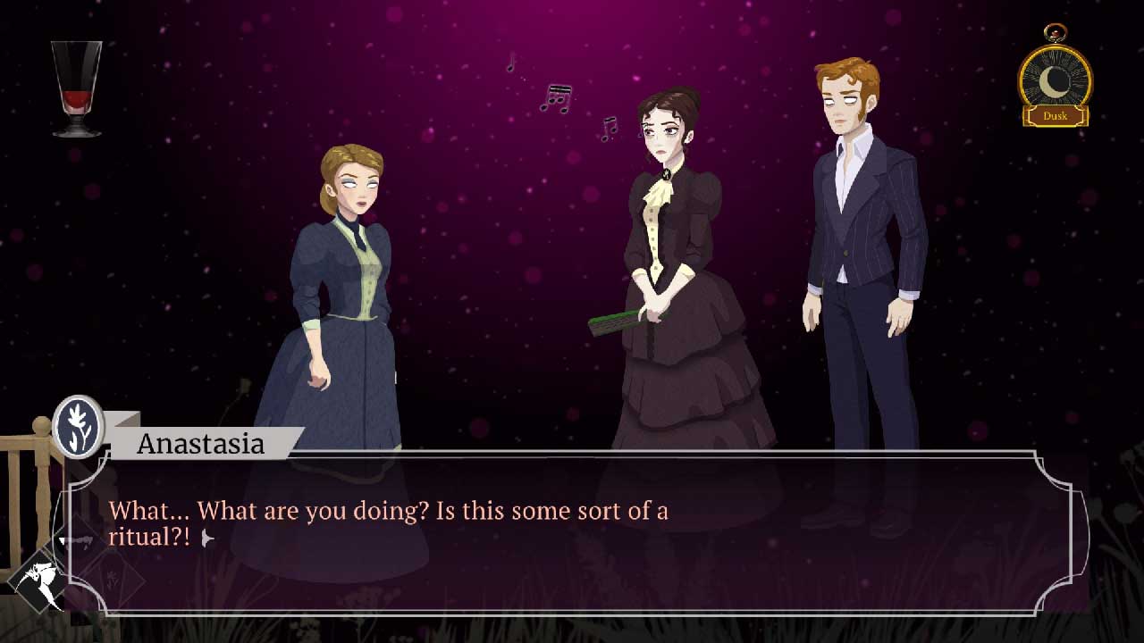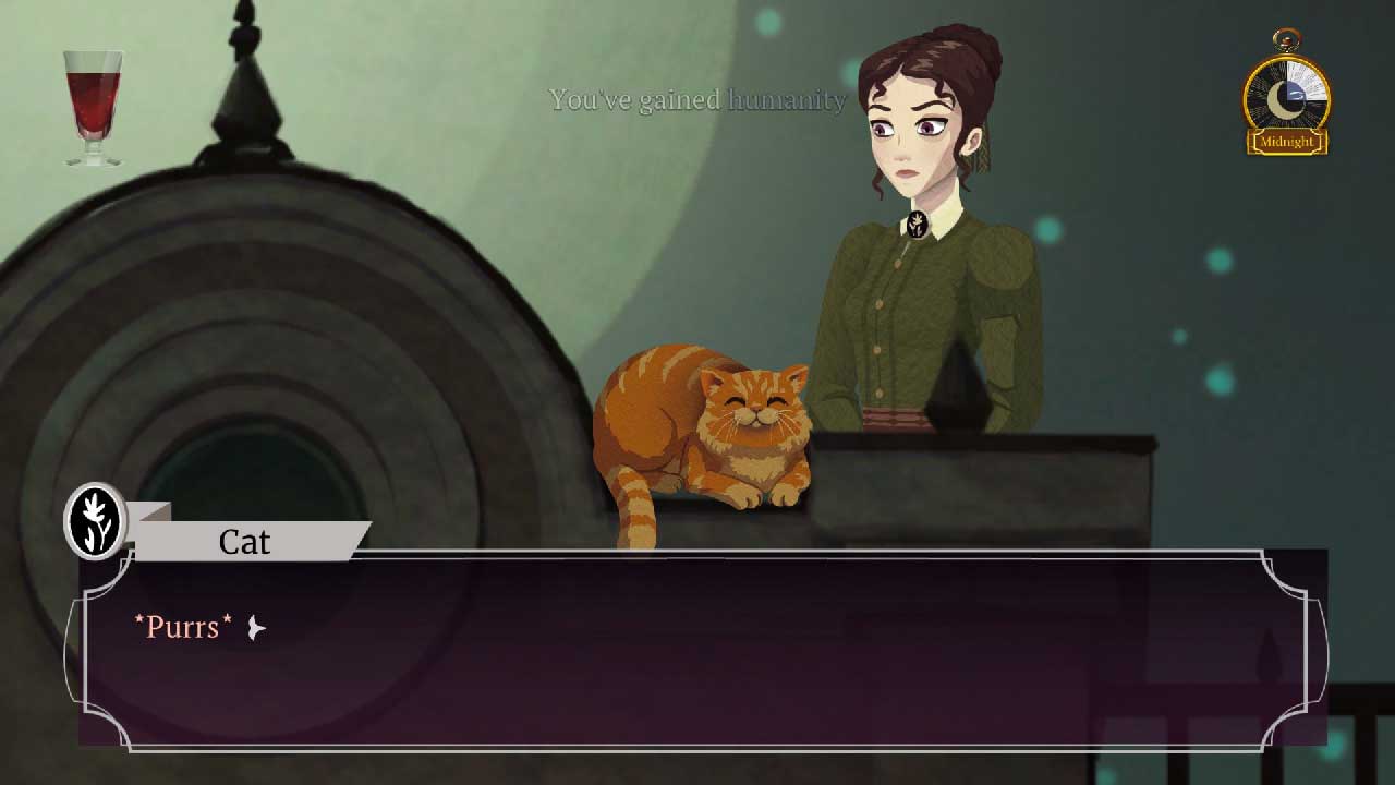 ภารกิจมากมายที่ต้องทำให้สำเร็จ ทั้งเวลาและความสนใจที่ต้องใช้ หมายความว่าแม้จะมีปริศนาตรรกะ แต่ก็มีบางอย่างที่ต้องทำในเกมที่ฉันกำลังตรวจสอบอยู่ Cabernet ไม่ใช่แค่ความบันเทิงแบบผิวเผินเท่านั้น แต่ยังสำรวจธีมที่ลึกซึ้งยิ่งขึ้น เช่น ความหมายของชีวิตอมตะและธรรมชาติของธรรมชาติของมนุษย์ ในฐานะแวมไพร์ ลิซ่ามีเวลาไม่จำกัดในการสำรวจโลก แต่สิ่งนี้ยังบังคับให้เธอเผชิญกับความเหงาและความเบื่อหน่ายอีกด้วย