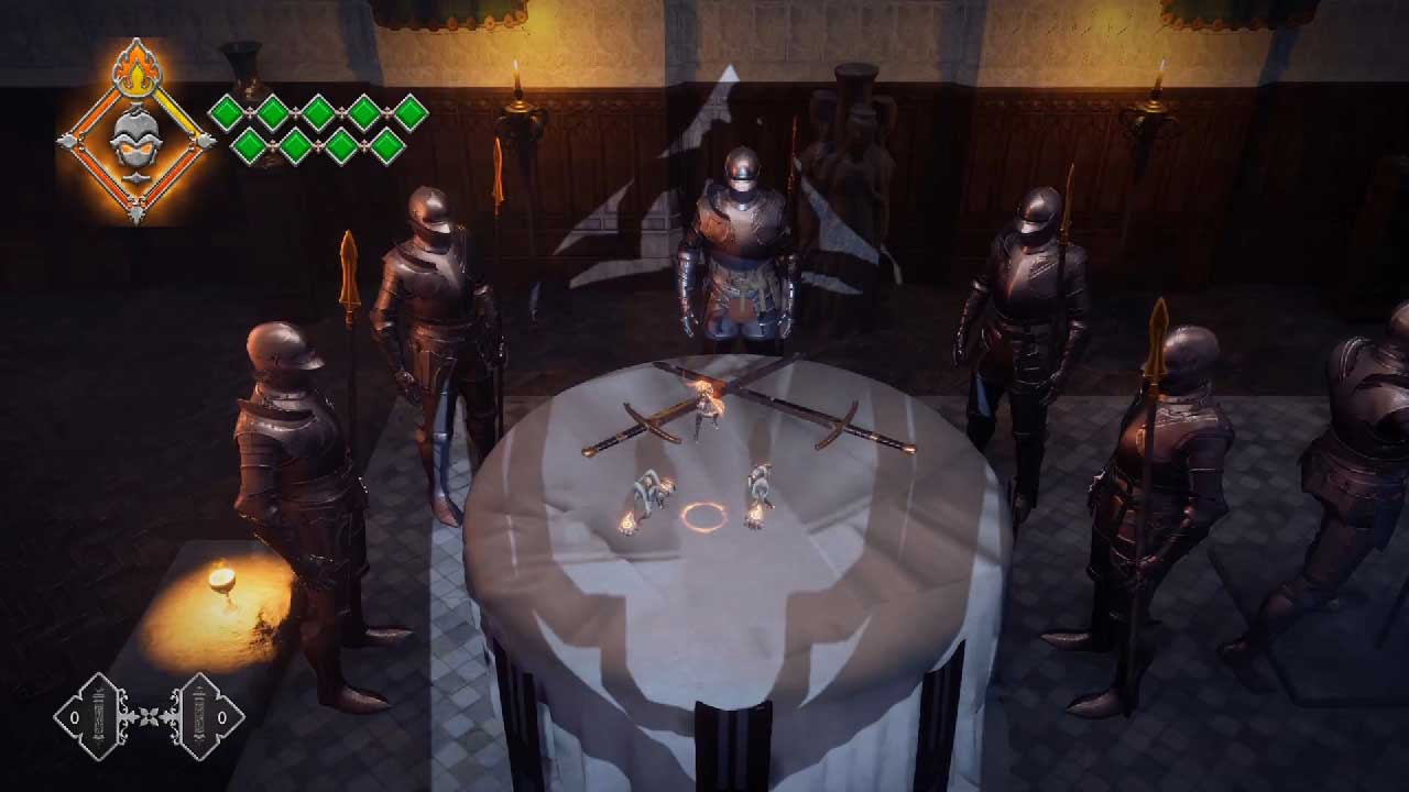 อัศวินตัวนี้เป็นตัวละครที่น่ารัก ฉันชอบที่แสงส่องรอบตัวเขาอยู่เสมอ ดังนั้นคุณจึงไม่ต้องกังวลว่าจะหลงทางในความมืด เทียนที่จุดไว้เมื่อคุณเดินผ่านก็ให้ความรู้สึกที่ดีเช่นกัน เช่นเดียวกับแสงที่ส่องผ่านหน้าต่างเล็กๆ ที่อยู่ด้านหลัง กล้องทำงานได้ดีมาก โดยจะซูมเข้าและออกเพื่อเน้นย้ำว่าคุณตัวเล็กแค่ไหนเมื่อเทียบกับห้องขนาดใหญ่ ในแง่ของความสวยงาม เกมนี้ถือเป็นผลงานชิ้นเอกจริงๆ และดูสวยงามมากในทุกด้าน ทั้งในด้านภาพวาดและด้านการเคลื่อนไหว เพลงก็ไม่มีอะไรโดดเด่นและพูดได้เพียงว่ามันเข้ากับธีมแฟนตาซีของโลกเกม