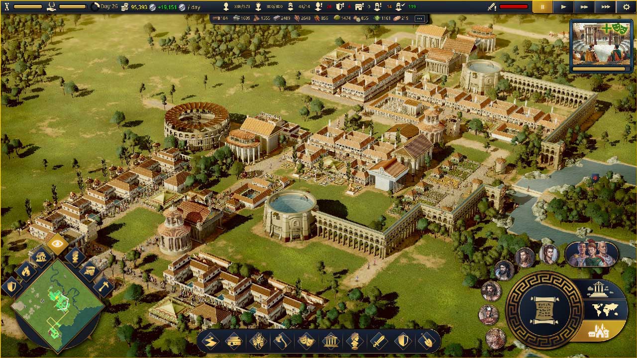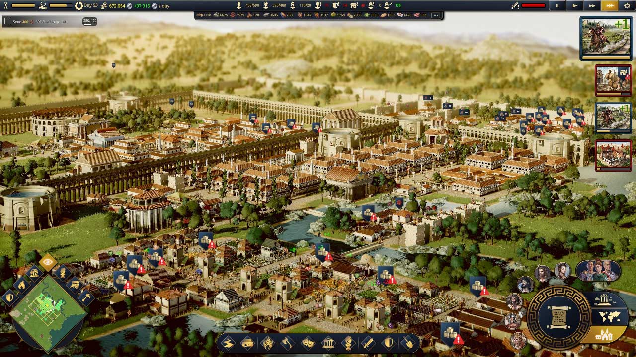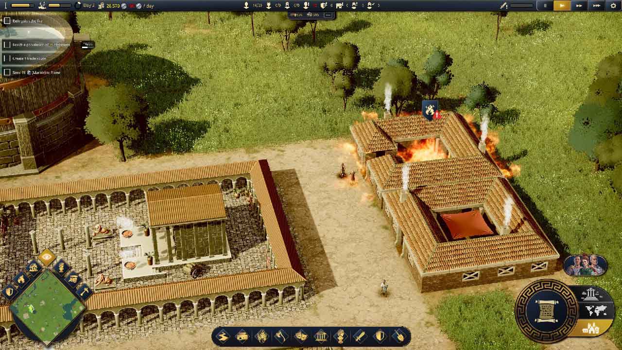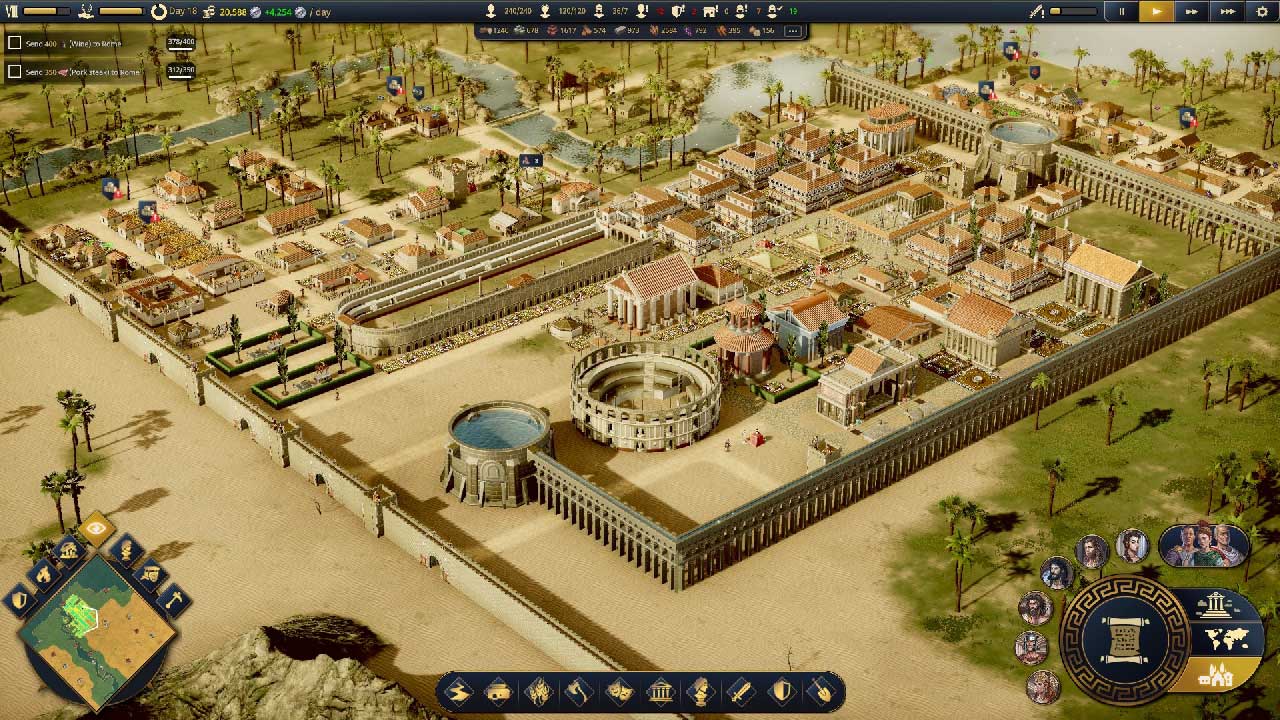 คุณเป็นเมืองที่ใหญ่ที่สุดในกรุงโรมโบราณ คุณสั่งให้สร้างที่อยู่อาศัย คุณสั่งทีมงานก่อสร้างให้สร้างโรงงาน คุณตัดสินใจว่าจะสร้างสถานีดับเพลิงแห่งต่อไปที่ไหน ทุกอย่างต้องมีถนนเชื่อมถึงอาคารหลัก ชุมชน และทุกอย่างต้องเข้าถึงน้ำจืด ทันทีที่ตรงตามเงื่อนไขเหล่านี้ ผู้ตั้งถิ่นฐานจะเข้ามาอาศัยอยู่ในเมืองและโรงงานต่างๆ ก็เริ่มผลิตสินค้า การทำเหมืองหินและแร่ การเก็บเกี่ยวผลิตภัณฑ์