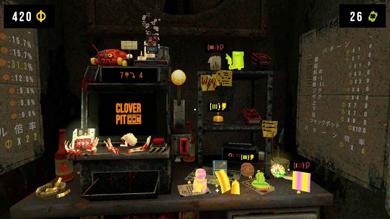CloverPit ดูเหมือนจะเป็นเกมโร้กไลท์แนววางแผนที่ค่อนข้างดีทีเดียว เห็นได้ชัดว่าได้รับแรงบันดาลใจจาก Balatro แต่กลับทำออกมาได้ง่ายกว่ามาก ตรงนี้ ปฏิสัมพันธ์ทั้งหมดจะสรุปลงที่การสร้างตัวละครด้วยเวทมนตร์ แล้วค่อยดูว่าอะไรจะเกิดขึ้นกับโอกาส มันอาจจะดูจำกัด แต่จริงๆ แล้วมันใช้งานได้ดีมาก ความรู้สึกของเกมนี้มันแตกต่างออกไป มันเหมือนกับห้องหลบหนีที่ตึงเครียดและเต็มไปด้วยความชั่วร้าย ที่คุณถูกขังอยู่ในห้องขังที่มีเครื่องสล็อต และพยายามจ่ายหนี้ที่กำลังจะหมดเพื่อเอาชีวิตรอด