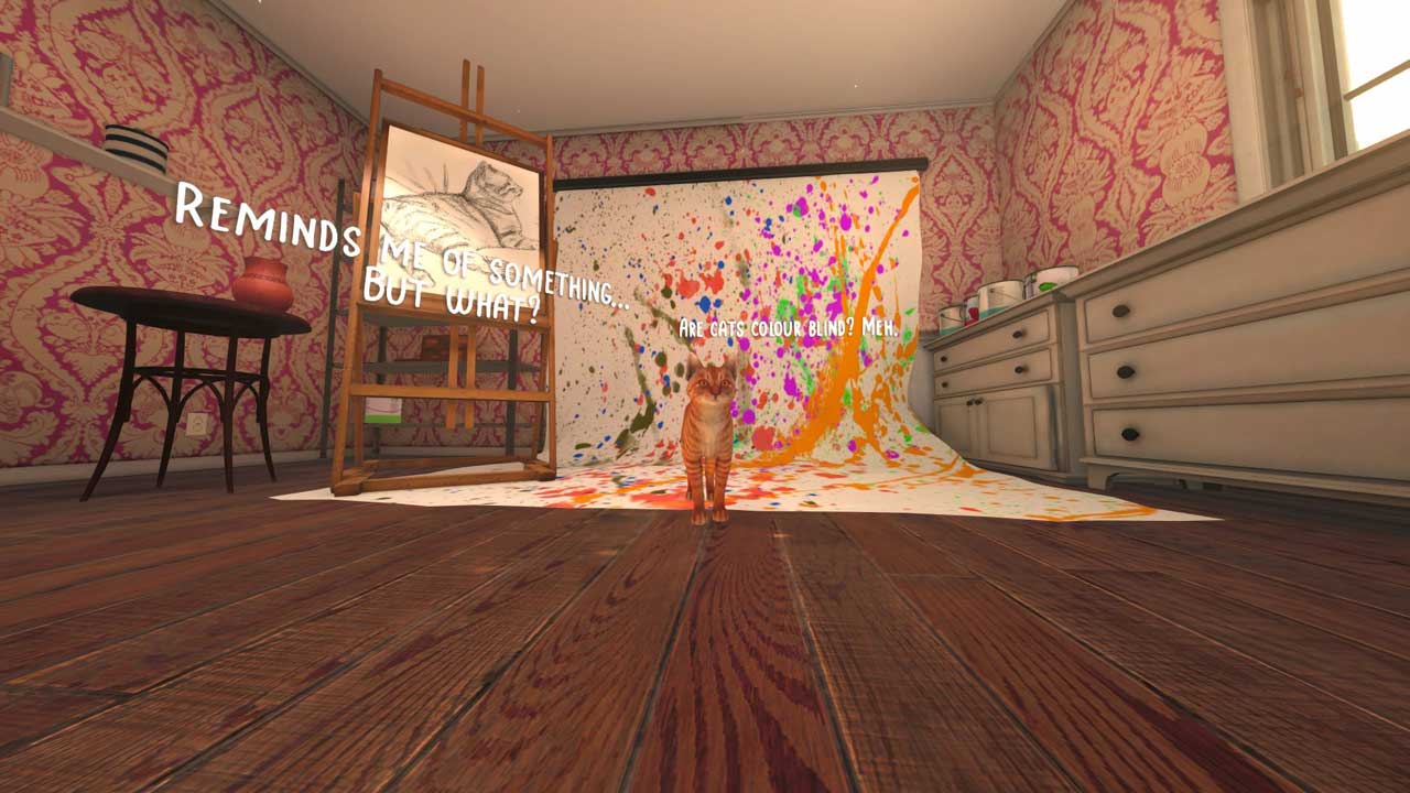 แน่นอนว่านี่ไม่ใช่เกมระดับ AAA แต่ฉันประทับใจกับการนำเสนอโดยรวมของเกม และถ้าคุณกังวลว่าแมวจะดูไม่สมจริงหรือดูไม่น่าเชื่อถือ ก็ไม่ต้องกังวลไป เกมนี้มีอารมณ์ขันเป็นส่วนใหญ่ มีผู้บรรยายที่เฉียบคมซึ่งถ่ายทอดความคิดและจิตสำนึกของแมวออกมา และตัวละครมนุษย์ที่โต้ตอบกับแมวตลอดทั้งเรื่องยาวสามชั่วโมง เสียงพากย์ก็ทำได้ดีมาก มีสำเนียงออสเตรเลียที่หนักแน่น และบทสนทนาที่เต็มไปด้วยอารมณ์ความรู้สึก