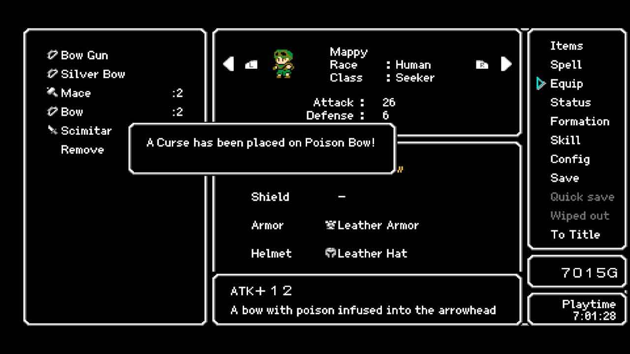 ข้อเสียอีกอย่างคืออัตราการโจมตีที่สูงมาก แม้ว่าจะมีไอเท็มที่สามารถลดจำนวนการเผชิญหน้าได้ แต่ไอเท็มเหล่านี้ไม่มีให้ในช่วงต้นเกม (มีราคาแพงมาก) ดังนั้นศัตรูจึงปรากฏตัวทุกๆ 5-10 บ้าน ด้วยศัตรูมากมายเหล่านี้ อาจเป็นเรื่องยากสำหรับคนที่ไม่คุ้นเคยกับเกมแนวเก่าๆ แม้ว่าสิ่งเหล่านี้จะไม่ใช่ปัญหาใหญ่ แต่ถ้าคุณเป็นแฟนเกม RPG ยุค Famicom เก่าๆ ก็น่าจะพอรับได้ และผมคิดว่าอาจมีบางคนที่มองว่าข้อเสียที่ผมพูดถึงเป็นข้อดี