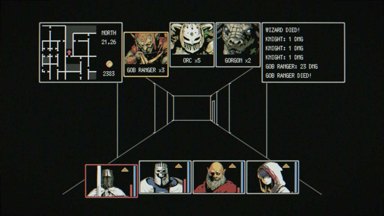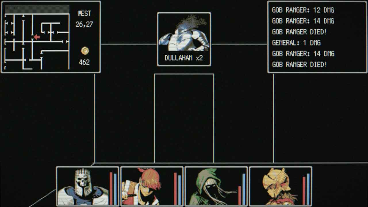 คุณต้องจัดปาร์ตี้สี่คนจาก 12 คลาสที่แตกต่างกัน และเข้าสู่ดันเจี้ยน กำจัดมังกร และทุกอย่าง แม้แต่การต่อสู้ จะเป็นแบบอัตโนมัติ นอกจากความแตกต่างทางสถิติและสถานะปาร์ตี้แล้ว ก็ไม่มีอะไรพิเศษที่ทำให้ตัวละครที่เลือกได้มีความโดดเด่น และพวกเขาไม่ได้เข้าร่วมปาร์ตี้หรือนำอะไรพิเศษมาให้ ทุกคนจะเลเวลอัปในอัตราเดียวกัน พวกเขาทั้งหมดจะได้รับบัฟเหมือนกันจากการไปเยี่ยมกิลด์หรือช่างตีเหล็กในราคาเดียวกัน และการเยี่ยมชมครั้งต่อๆ ไปก็จะเพิ่มราคาในลักษณะเดียวกัน โทษเดียวของการตายคือเวลาที่ผ่านไปในปฏิทินของเกม ซึ่งดูเหมือนจะไม่มีผลอะไรเลย ไม่มีสมบัติหรือกับดัก ไม่มีห้องลับ ไม่มีใครให้ช่วย