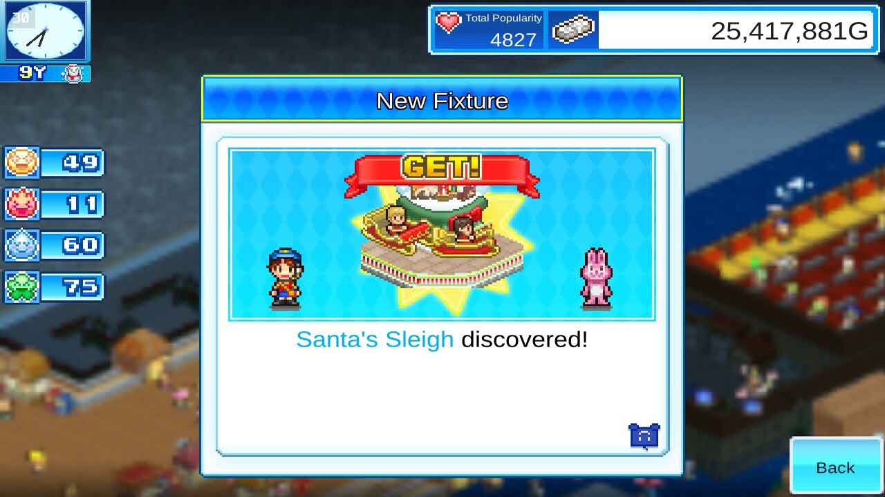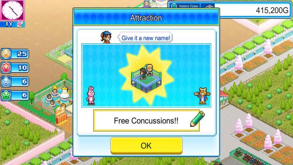 ผู้เข้าชมจะได้เพลิดเพลินกับบรรยากาศอันแสนสุขของขบวนพาเหรด ขณะที่สวนสนุกก็ได้รับประโยชน์จากผลกำไรมหาศาลและความนิยมที่เพิ่มขึ้น นอกจากการตั้งค่าเงินเริ่มต้นแล้ว เกมยังมีการจำกัดคะแนนอีกด้วย การปลดล็อกอาคารและไอเทมบางอย่างต้องใช้คะแนน ซึ่งอาจเป็นความท้าทายสำหรับผู้เล่นที่มีเงินมากแต่มีแต้มน้อย ซึ่งถือเป็นอุปสรรคระหว่างการพัฒนาสวนสนุก