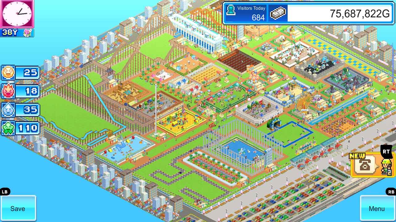 เมื่อเทียบกับเกมอื่นๆ ที่ผมเคยเล่นมา อินเทอร์เฟซการก่อสร้างของเกมนี้เรียบง่าย ชัดเจน และมีสไตล์มากกว่ามาก นอกจากนี้ยังมีเงื่อนไขในการสร้างสวนสนุก และการทำตามเงื่อนไขเหล่านี้จะเพิ่มคะแนนดาว คะแนนดาวที่สูงขึ้นจะดึงดูดนักท่องเที่ยวได้มากขึ้น และประสิทธิภาพของสวนสนุกก็จะดีขึ้นเรื่อยๆ ที่นี่ คุณไม่ต้องคิดมากเรื่องทางเดินและประตู เพราะนักท่องเที่ยวมีอิสระที่จะเดินผ่านกำแพง ทำให้ผู้คนสามารถขยายสิ่งอำนวยความสะดวกในสวนสนุกได้มากเท่าที่ต้องการ
