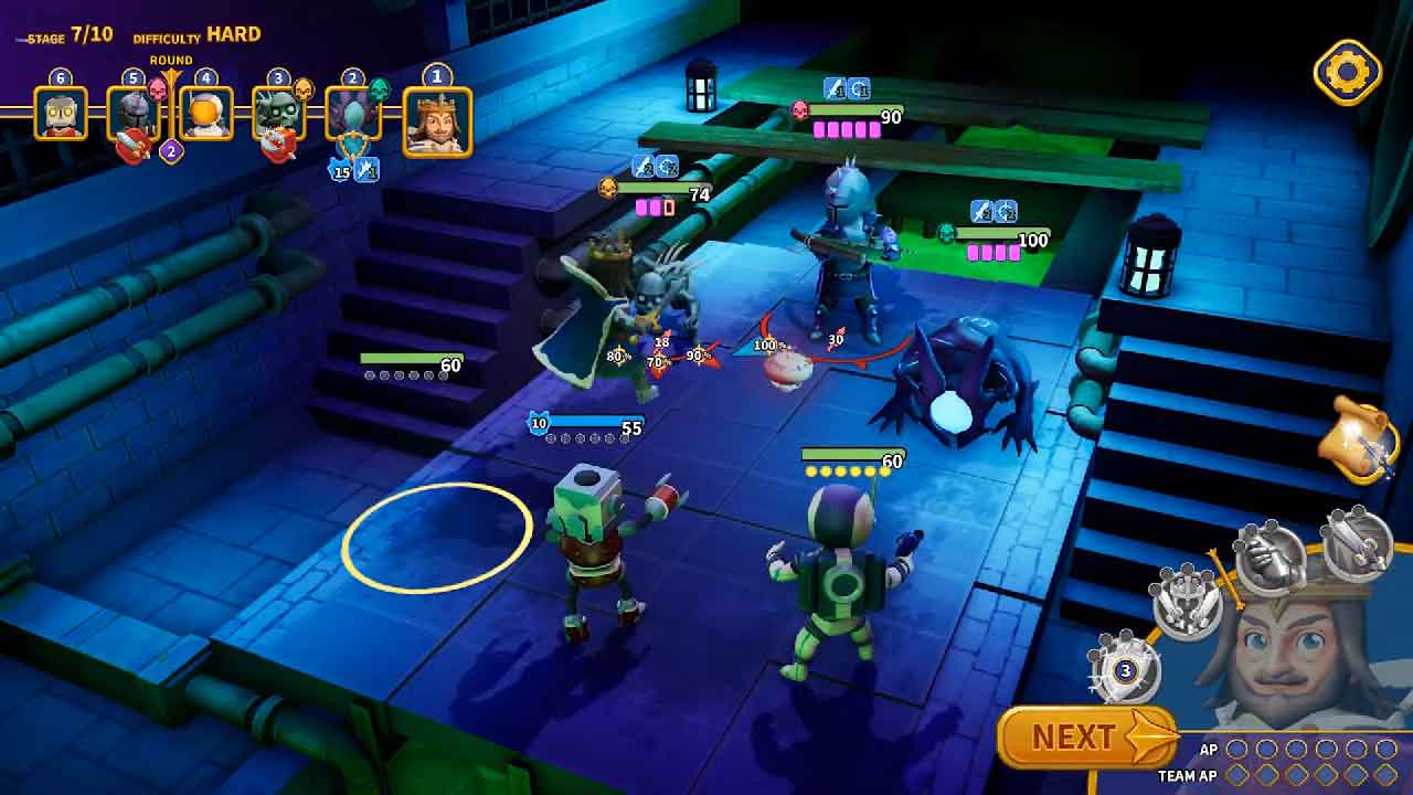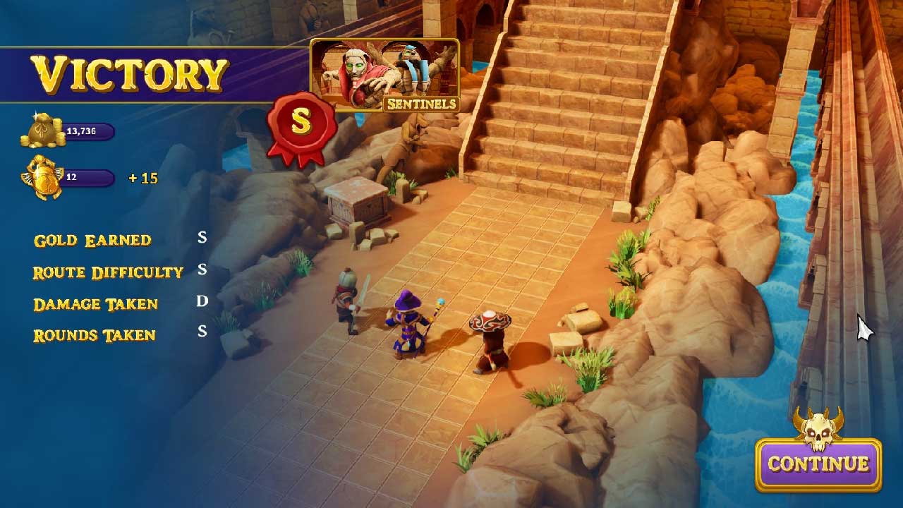นอกจากนี้ เพื่อรักษาความเป็นเกมประเภท Roguelite ไว้ คุณจะเลือกการต่อสู้ครั้งต่อไปจากแผนที่ เลือกการเผชิญหน้าตามความยากและรางวัลที่เป็นไปได้ เช่น สุขภาพ เงิน หรือสิ่งประดิษฐ์ การต่อสู้เสร็จสิ้นจะมีโอกาสอัปเกรดหนึ่งทักษะต่อฮีโร่หนึ่งตัว แต่ตัวเลือกจะเป็นแบบสุ่ม บางครั้ง คุณยังจะได้รับสิ่งประดิษฐ์ที่คงอยู่ตลอดการวิ่งและให้โบนัส เช่น เพิ่มการฟื้นฟู AP หรือพลังโจมตีที่เพิ่มขึ้น