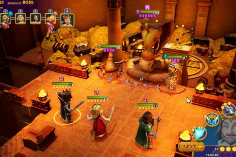 รูปแบบการเล่นและกลไกการต่อสู้มีความสำคัญมาก โดยทิ้งการเล่าเรื่องไว้เบื้องหลัง การต่อสู้เป็นไปตามระบบเทิร์นเบส โดยมีแถบแอคชั่นที่ด้านบนของหน้าจอแสดงลำดับเทิร์นของฮีโร่และศัตรู แถบยังแสดงการโจมตีของศัตรูที่กำลังจะเกิดขึ้นและผลกระทบที่อาจเกิดขึ้น เช่น พิษหรือการเผาไหม้ คุณสามารถรับข้อมูลเชิงลึกเพิ่มเติมได้โดยการคลิกค้างไว้ที่สัตว์ประหลาดแต่ละตัวเพื่อดูข้อมูลโดยละเอียดเกี่ยวกับการโจมตีของมัน