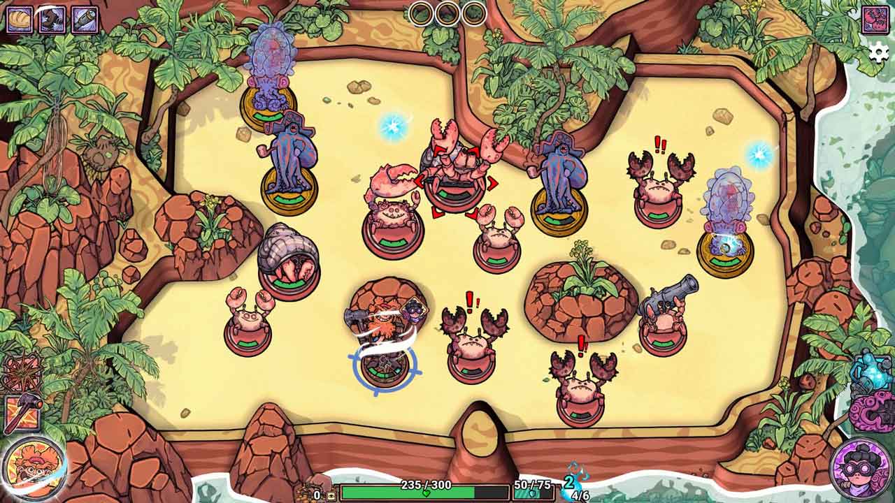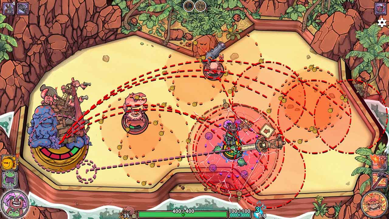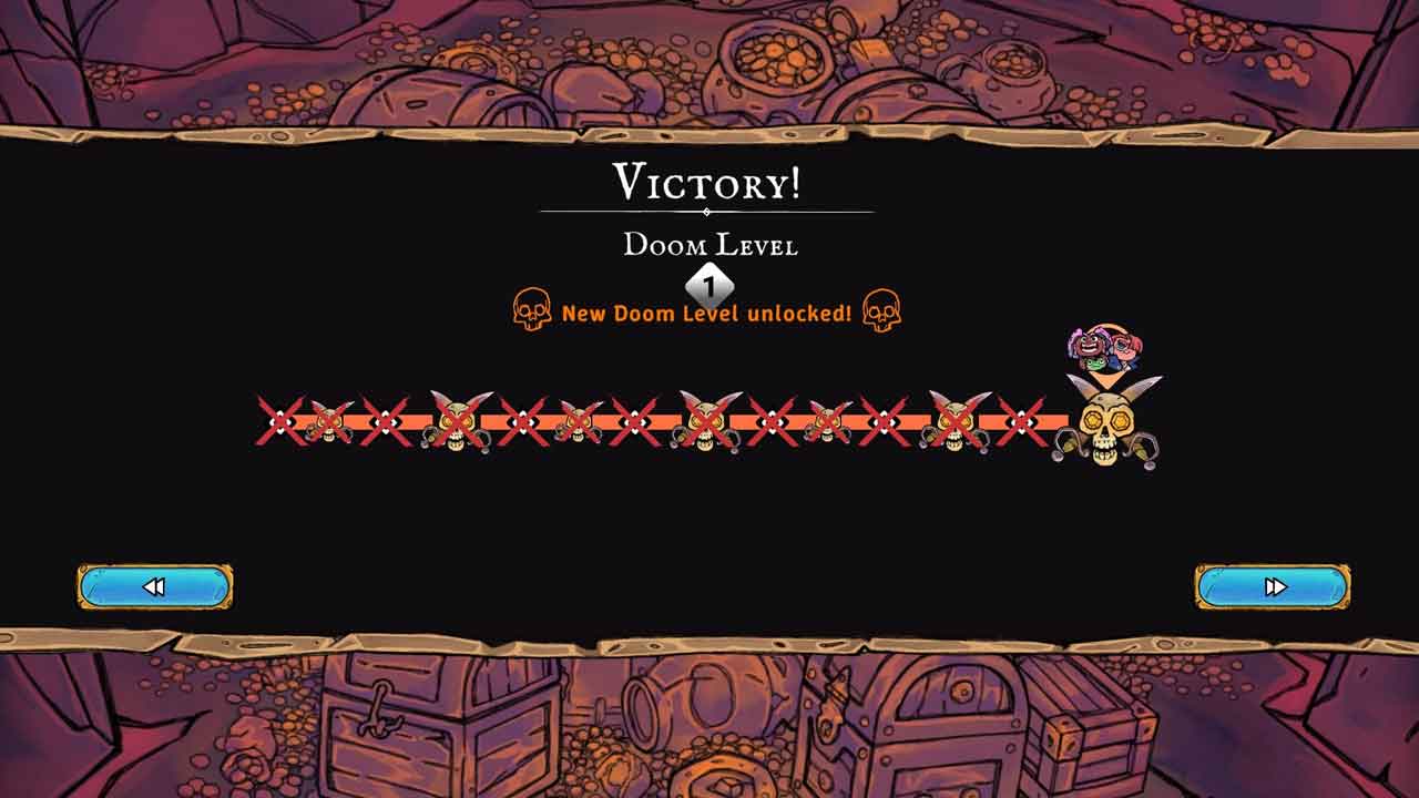 ถึงแม้ว่าเกมอย่าง Hollow Knight: Silksong จะดึงดูดความสนใจของผมในเรื่องนี้ แต่ผมก็ยังกลับมาเล่นโร้กไลค์เทิร์นเบสธีมโจรสลัดเกมนี้อยู่เรื่อยๆ ซึ่งแต่ละด่านจะมีศัตรูหลายตัวอยู่บนจานสีแดง ซึ่งคุณต้องทำลายล้างด้วยการโจมตีตัวละครเพื่อรับรางวัลที่มาพร้อมกับลูกฮ็อกกี้ระเบิด