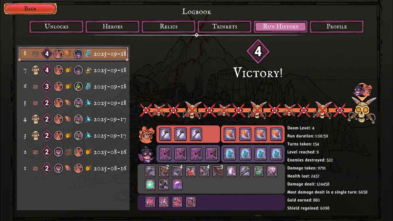 ทุกครั้งที่คุณผ่านระดับความยากหนึ่ง คุณจะปลดล็อกระดับความยากที่สอง ซึ่งจะเพิ่มความหลากหลายให้กับการเล่นของคุณ แต่ก็ทำให้การเล่นยากขึ้นด้วยเช่นกัน คุณยังปลดล็อกสิทธิพิเศษและพลังเพิ่มได้อีกด้วย คุณจะขยายเกาะไปตามไบโอมต่างๆ แต่ละไบโอมจะเป็นแผนที่เหมือนกับ Slay The Spire และคุณสามารถเลือกเส้นทางของคุณเองได้ตามการตั้งค่าบิลด์ของคุณ เมื่อคุณเล่นไปเรื่อยๆ คุณจะปลดล็อกระดับความยากใหม่ๆ ที่มีดีบัฟบังคับและความซับซ้อนมากขึ้นเพื่อให้เกมน่าสนใจ ตัวละครแต่ละตัวมีรูปแบบการเล่นที่แตกต่างกันมาก หมายความว่าถึงแม้สถานการณ์การต่อสู้จะคล้ายกัน แต่วิธีการเข้าหาตัวละครจะแตกต่างกันไปตามบิลด์ หลังจากเล่นไปแปดชั่วโมง ผมก็ยังอยากกลับไปค้นหาองค์ประกอบใหม่ๆ เพื่อปลดล็อกอยู่ดี