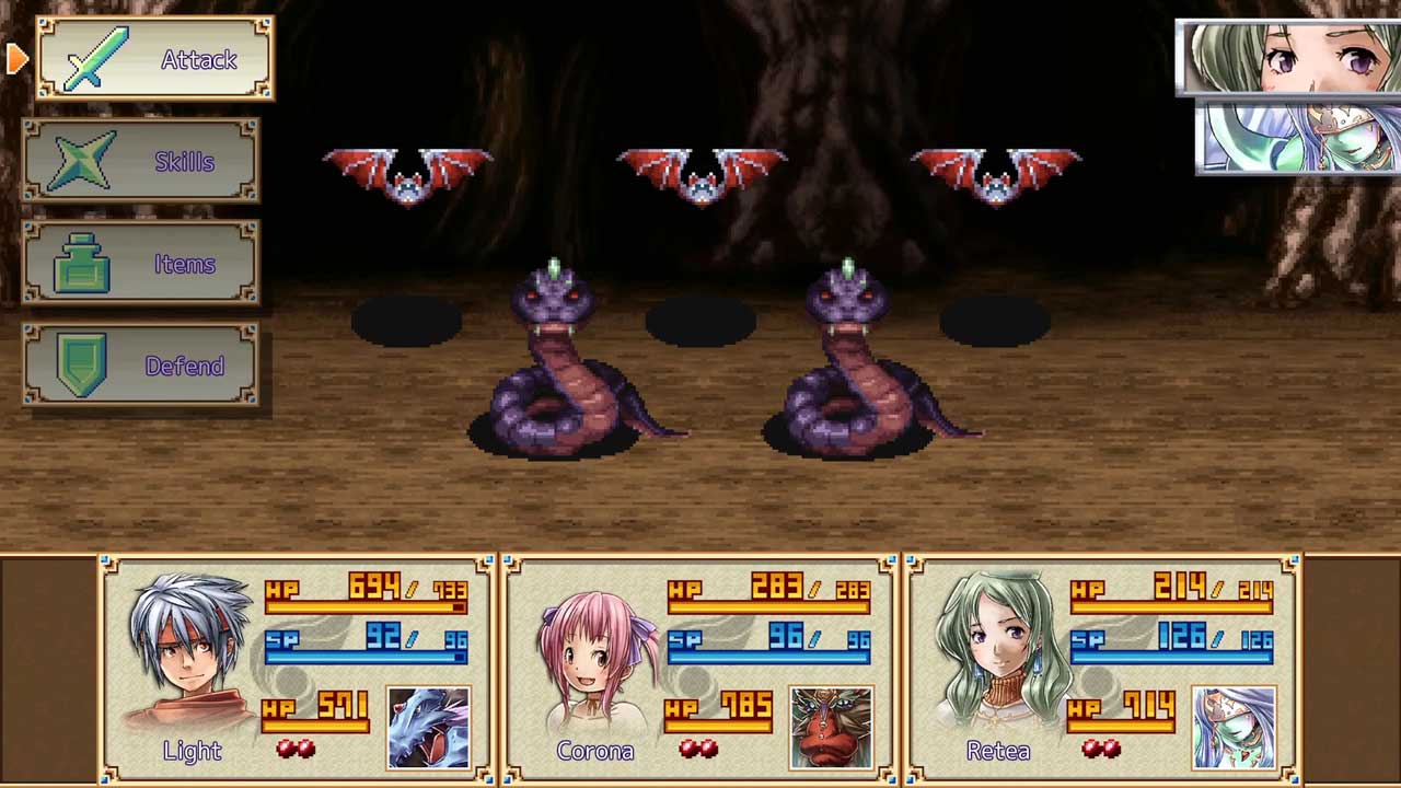 มันเป็นหลักฐานง่ายๆ สำหรับเกมเล่นตามบทบาทที่มีมิติเท่ากันซึ่งเข้ากันได้อย่างลงตัวกับการเล่าเรื่องในขณะที่คุณสำรวจพื้นที่ต่างๆ ในขณะที่มีพลังมากขึ้น ใช้เวลาไม่นานก่อนที่คุณจะได้พบกับตัวละครหลักทั้งสอง Retea และ Corona ที่เข้าร่วมกลุ่มของคุณ ตัวละครแต่ละตัวมีสถานะเป็นของตัวเองและมีสัตว์ผู้พิทักษ์ชื่อบาลอนและเกรซ วีรบุรุษแห่งเรื่องราวแลกเปลี่ยนบทสนทนาระหว่างกันซึ่งแสดงออกมาในรูปแบบของกล่องข้อความ ฉันพบว่าบทสนทนาเหล่านี้มีจำนวนค่อนข้างสูง ดังนั้นควรอ่านข้อความเยอะๆ
