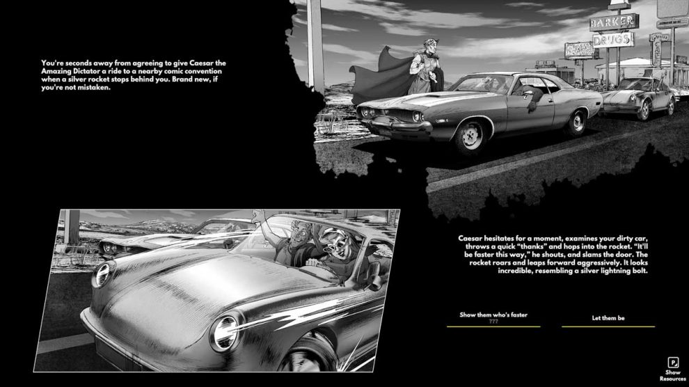โดยพื้นฐานแล้ว นี่คือเกมขับรถบนถนนสไตล์หนังสือการ์ตูนที่มีหลากหลายแนว เพิ่งเปิดตัวสำหรับคอนโซลอื่นๆ รวมถึง PS5 และผสมผสานการแข่งรถความเร็วสูงเข้ากับการเล่าเรื่องที่ดื่มด่ำ หนึ่งคน หนึ่งรถ และถนนที่ทอดยาวสุดลูกหูลูกตา นี่คือสามองค์ประกอบของภาพยนตร์โร้ดมูฟวี่อเมริกันคลาสสิก อันที่จริง Heading Out ให้ความรู้สึกเหมือนเป็นการแสดงความเคารพต่อภาพยนตร์โร้ดทริป แม้แต่ภาพก็ยังใช้สไตล์หนังสือการ์ตูนขาวดำ ตัวละครหลักของเกมคือนักแข่งรถที่ออกเดินทางข้ามประเทศ