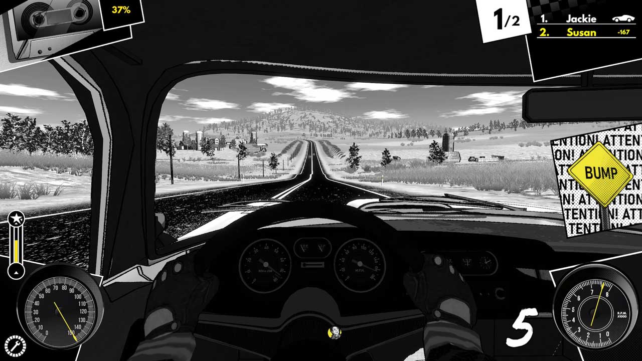 โดยพื้นฐานแล้ว นี่คือเกมขับรถบนถนนสไตล์หนังสือการ์ตูนที่มีหลากหลายแนว เพิ่งเปิดตัวสำหรับคอนโซลอื่นๆ รวมถึง PS5 และผสมผสานการแข่งรถความเร็วสูงเข้ากับการเล่าเรื่องที่ดื่มด่ำ หนึ่งคน หนึ่งรถ และถนนที่ทอดยาวสุดลูกหูลูกตา นี่คือสามองค์ประกอบของภาพยนตร์โร้ดมูฟวี่อเมริกันคลาสสิก อันที่จริง Heading Out ให้ความรู้สึกเหมือนเป็นการแสดงความเคารพต่อภาพยนตร์โร้ดทริป แม้แต่ภาพก็ยังใช้สไตล์หนังสือการ์ตูนขาวดำ ตัวละครหลักของเกมคือนักแข่งรถที่ออกเดินทางข้ามประเทศ