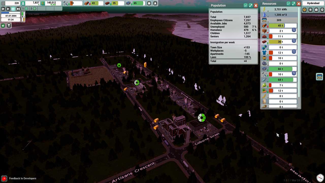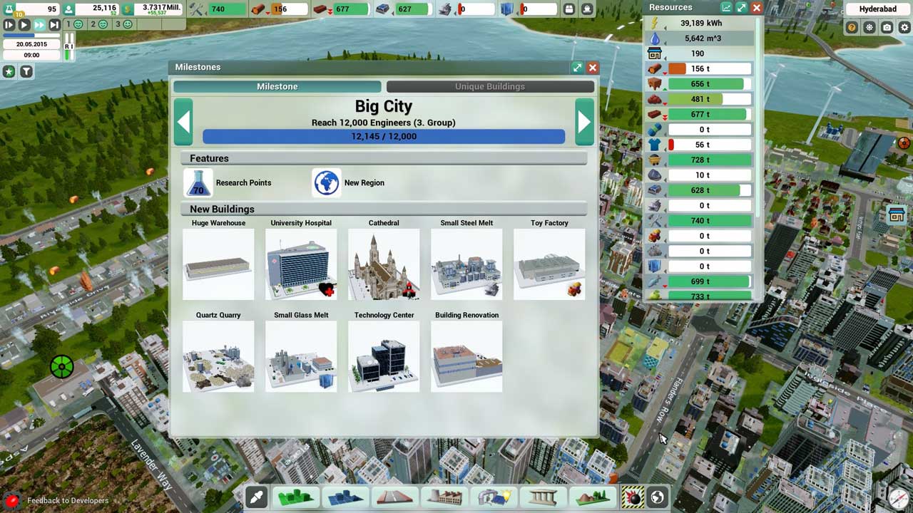 อย่างที่สองคือตัวแก้ไขเนื้อหาที่ทรงพลังมากของเกม ซึ่งให้คุณทำสิ่งต่าง ๆ เช่น เปลี่ยนสี และเพิ่มหรือลบชิ้นส่วนบนอาคารและบริเวณได้ ประการที่สามคือด้านการจัดการทรัพยากรของเกม (คุณสามารถเล่นโหมดแซนด์บ็อกซ์และไม่ต้องกังวลกับเรื่องนี้ได้หากต้องการ) ในการสร้างและเติบโต คุณต้องตอบสนองความต้องการของพลเมืองและอุตสาหกรรมของคุณ เกมนี้ใช้สิ่งนี้อย่างดีในเกมเพลย์เพื่อสร้างสมดุลให้กับเกม เมื่อเมืองของคุณเติบโตขึ้น มันจะเพิ่มการพิจารณาตามความเป็นจริงอีกชั้นหนึ่ง และตัวเลือกความยากช่วยให้คุณตัดสินใจได้ว่าการจัดการทรัพยากรของเกมนั้นยากหรือง่ายเพียงใด คุณสามารถสร้างป่าคอนกรีตหรือพื้นที่ใกล้เคียง/พื้นที่เพาะปลูกที่มีประชากรเบาบาง และทุกสิ่งในระหว่างนั้นได้ เนื่องจากโลกของเกมกว้างใหญ่มาก คุณจึงสามารถสร้างสิ่งเหนือจินตนาการได้