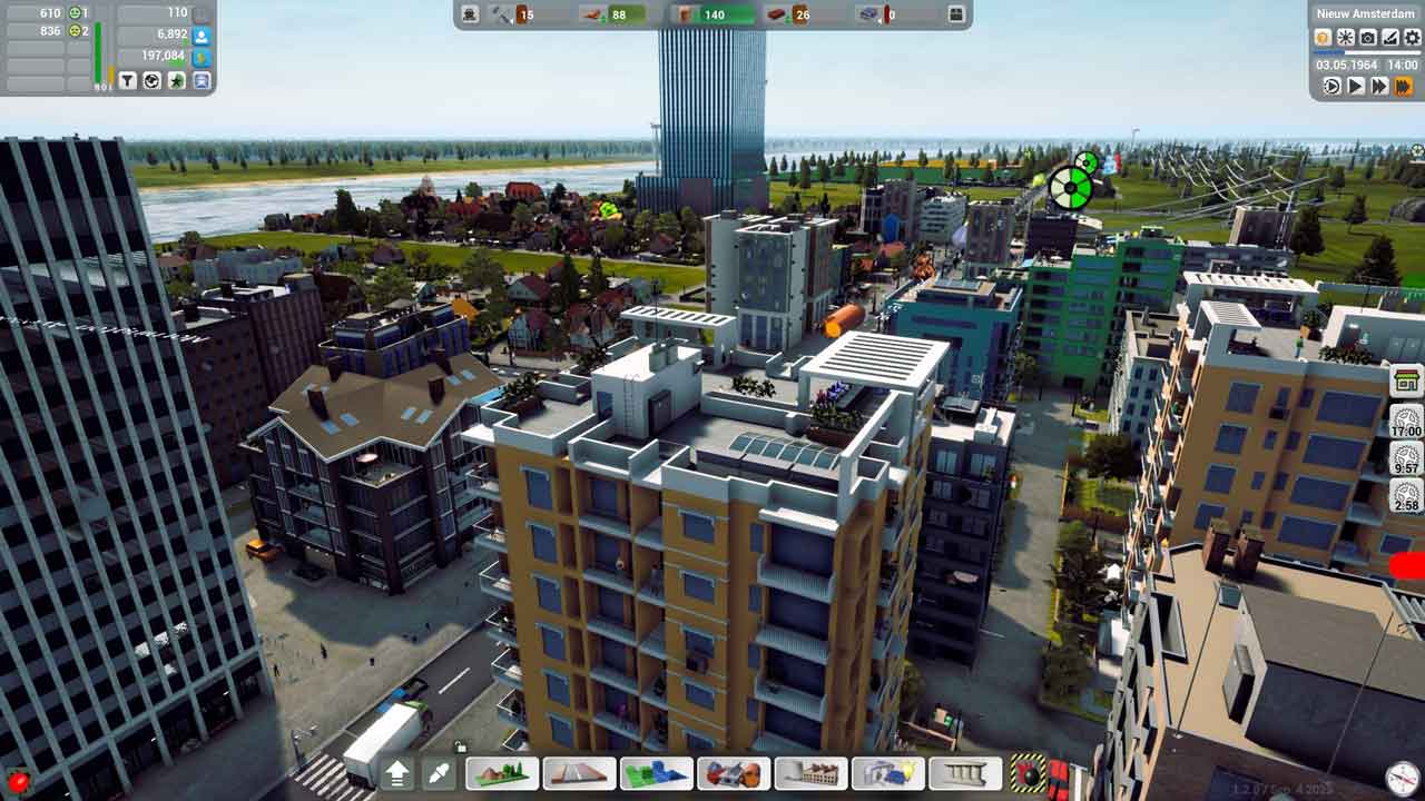 ในตอนแรก Highrise City ดูน่าทึ่ง โดยนำระดับความสมจริงมาสู่หน้าจอแบบที่ฉันไม่สามารถหาได้ใน Cities Skyline และ ANNO ซึ่งฉันจะอธิบายไว้ด้านล่าง ตัวอย่างเช่น ในชื่อใหม่นี้ คุณสามารถเปลี่ยนเวลา ตำแหน่ง และการหมุนของดวงอาทิตย์ เงา และเมฆได้ ซึ่งจะทำให้เมืองของคุณมีรูปลักษณ์ที่แตกต่างไปจากเดิมอย่างสิ้นเชิงตั้งแต่พระอาทิตย์ตกจนถึงพระอาทิตย์ขึ้น นอกจากนี้ยังมีตัวเลือกให้ดวงอาทิตย์เคลื่อนผ่านท้องฟ้าด้วยตัวมันเอง ให้คุณตั้งค่าความเร็วหรือปิดและควบคุมด้วยตนเองได้