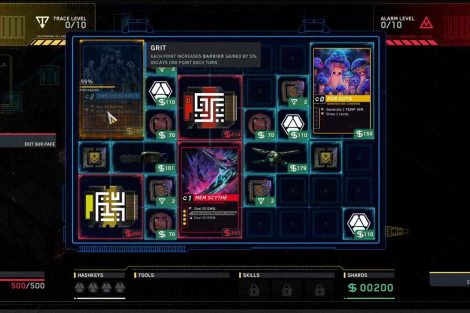 แทนที่จะเป็นการต่อสู้แบบใช้การ์ดอย่างเดียว คุณจะเคลื่อนที่ผ่าน “โหนด” (โหนดของพื้นที่เสมือนจริง) ที่สร้างขึ้นแบบสุ่ม โดยมีเส้นทางแยกย่อย การตัดสินใจเกี่ยวกับความเสี่ยงและผลตอบแทน การจัดการทรัพยากร และโอกาสที่จะเข้าถึงแกนหลักของระบบของบริษัท เกมยังแนะนำระบบการติดตาม/ระดับการแจ้งเตือน โดยแต่ละห้อง (โหนด) จะมีผู้รักษาความปลอดภัยที่แตกต่างกัน (ซึ่งให้การเพิ่มประสิทธิภาพการติดตามเพิ่มเติม) การต่อสู้จะยากขึ้นเมื่อระดับการแจ้งเตือนสูงขึ้น สิ่งนี้บังคับให้คุณต้องรักษาสมดุลระหว่างการสำรวจ การต่อสู้ และการลอบเร้นอย่างระมัดระวัง สร้างความรู้สึกแบบไซเบอร์พังก์ ส่วนตัวแล้ว ผมคิดว่าเกมนี้เข้ากับประเภทเกมแอ็กชันแฮ็กเกอร์ได้อย่างลงตัว