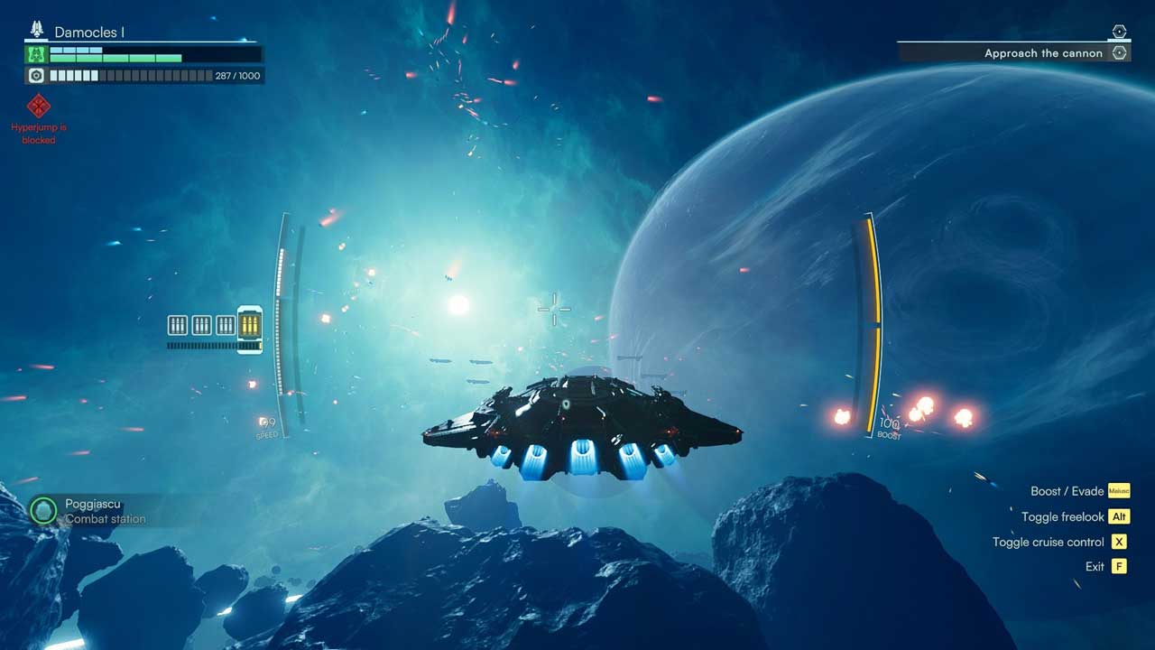 ระบบปืนและการต่อสู้ของยานน่าจะดีกว่านี้อีกหน่อย แต่มันก็ยังคงยึดหลักพื้นฐานได้ดี หลักการฟิสิกส์หลายอย่างดูไม่ค่อยสมเหตุสมผล เช่น ไฟไหม้นอกยานของคุณในอวกาศลึก การต่อสู้บนดาวเคราะห์ดูสมเหตุสมผลกว่า แต่กลับไม่ได้ให้ความสำคัญกับฟิสิกส์เลย ผมพยายามยอมรับเรื่องนี้ด้วยความสงสัยเล็กน้อย เพราะมันคือเกม และผมไม่ได้คาดหวังว่าผู้พัฒนาจะเคร่งครัดกับฟิสิกส์มากนัก แต่การลงรายละเอียดเล็กๆ น้อยๆ แบบนี้ในภายหลังก็อาจจะเป็นทางเลือกที่ดี
