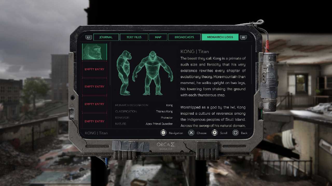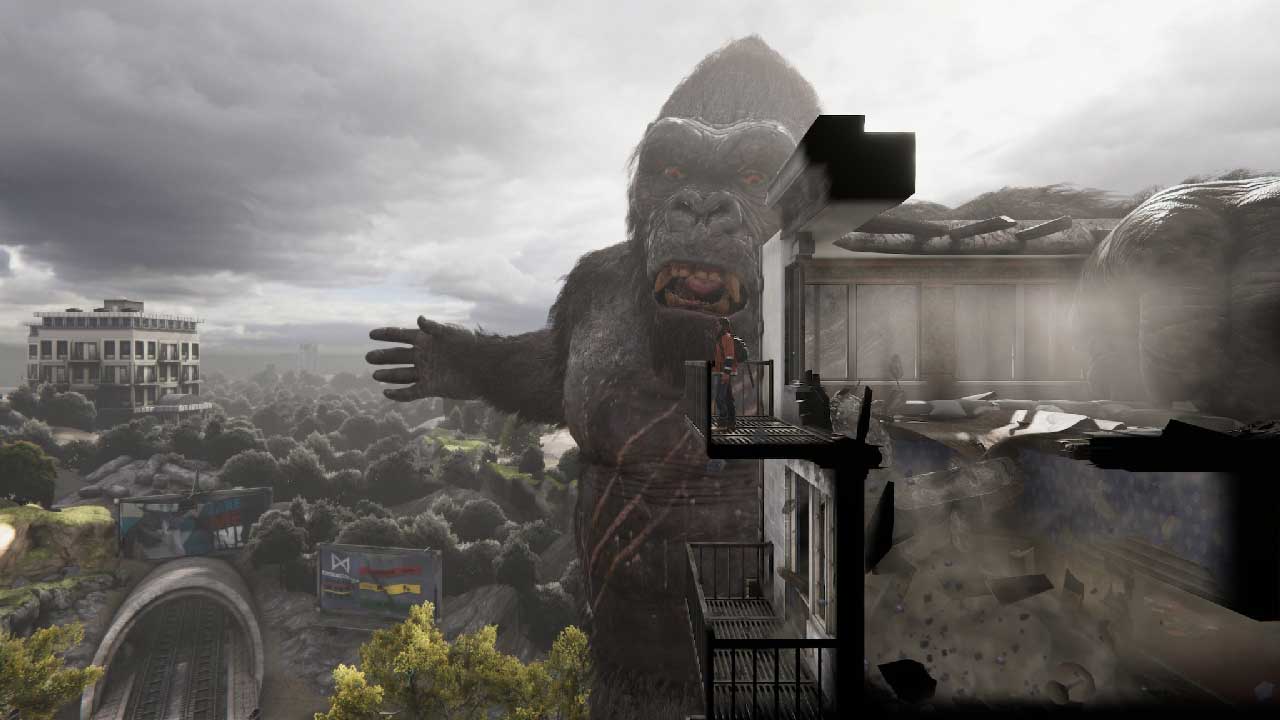 หลังจากผ่านส่วนสั้น ๆ ที่เราเรียนรู้การควบคุมพื้นฐานของเกม เช่น วิธีกระโดด วิธีคลาน และวิธีโต้ตอบกับสิ่งแวดล้อม Kong: Survivor Instinct เริ่มต้นอย่างรวดเร็ว เช่นเดียวกับเกม Metroidvania อื่นๆ ในตอนแรกเราจะพบกับสถานที่ที่เราไม่สามารถเข้าถึงได้ แต่ได้ปลดล็อกเครื่องมือต่างๆ ที่ทำให้เราสามารถกลับไปใช้งานได้ช่วงสั้นๆ เรามาเดินทางต่อจากอุปกรณ์ใหม่ที่พบกันเถอะ ระหว่างทาง David ได้พบกับตัวละครต่าง ๆ สองสามตัวที่ขยายเรื่องราว แต่เกมส่วนใหญ่ใช้เวลาเดินทางสำรวจสถานที่ต่างๆ เช่น ถนนในเมือง ตึกระฟ้า โรงพยาบาล และสิ่งอำนวยความสะดวกใต้ดินเพื่อค้นหาเบาะแสตลอดทาง ในที่สุด เดวิดก็พบอุปกรณ์ชิ้นหนึ่งที่ช่วยให้เขารวบรวมชิ้นส่วนบันทึกเสียงไคจูต่างๆ ได้ หลังจากรวบรวมเสียงทั้งหมดเพื่อทำให้เสียงคำรามของไคจูอันโด่งดังสมบูรณ์แล้ว โดยพื้นฐานแล้วเราสามารถเรียกพวกมันออกมาเพื่อปลดล็อคส่วนถัดไปของเมืองได้