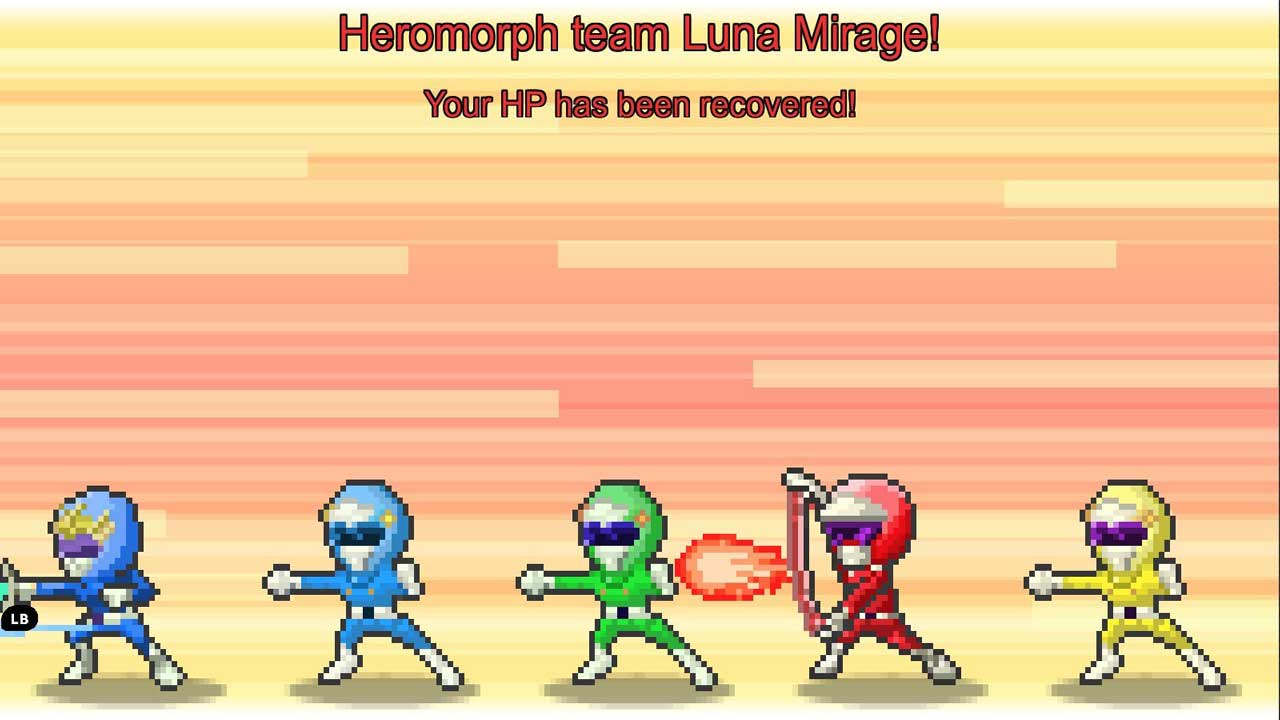 คุณลักษณะที่โดดเด่นที่สุดของเกมนี้คือระบบการต่อสู้แบบผลัดตาคล้ายกับเกมเล่นตามบทบาทของญี่ปุ่น (JRPG) ขณะต่อสู้กับกองกำลังชั่วร้าย ผู้เล่นสามารถจัดทีมต่อสู้ของตนเองที่มีสมาชิกสูงสุด 5 คน หรือจะจัดทีมที่มีสมาชิก 3 คนก็ได้ การต่อสู้แบบผลัดตาจะเป็นแบบอัตโนมัติ ในการเริ่มการต่อสู้ คุณสามารถคลิกสองครั้งบนศัตรูในฉาก จากนั้นเลือกตัวเลือกเริ่ม การดำเนินการทั้งหมดที่ตามมาจะถูกดำเนินการโดยอัตโนมัติ รวมถึงเวลาในการรอเพื่อเปิดการโจมตี การเปลี่ยนตัวเองเป็นฮีโร่หลังจากรวบรวมพลังงานจนเต็ม และการใช้ท่าพิเศษ ฯลฯ แน่นอนว่าคุณสามารถใช้บล็อกเพื่อดำเนินการกู้คืนกลุ่มให้กับฮีโร่ทีมได้ หลังจากที่แท่งพลังงานของสมาชิกทีมฮีโร่ชาร์จเต็มแล้วระหว่างการต่อสู้ พวกเขาสามารถเปิดใช้งานทักษะการเปลี่ยนแปลงและแปลงร่างเป็นซูเปอร์ฮีโร่เพื่อต่อสู้ได้