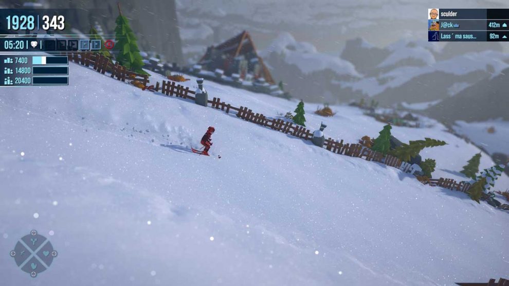 เพียงฟีเจอร์นี้เพียงอย่างเดียวก็ทำให้การควบคุมสกีเป็นเรื่องง่ายขึ้น แต่ในขณะเดียวกันก็ให้ความรู้สึกที่แตกต่างกันอย่างมาก ยิ่งไปกว่านั้น คุณยังสามารถเลี้ยวและกลับได้ตลอดเวลา ทำท่าผาดโผนระหว่างการกระโดด ขี่บนน้ำ และปรับระยะการกระโดดของคุณได้โดยการเปิดสกีเพื่อให้ไถลได้มากขึ้นหรือปิดสกีเพื่อให้ตกลงมาได้เร็วขึ้น และแน่นอนว่ายังมีพื้นผิวที่เป็นน้ำแข็งอีกด้วย