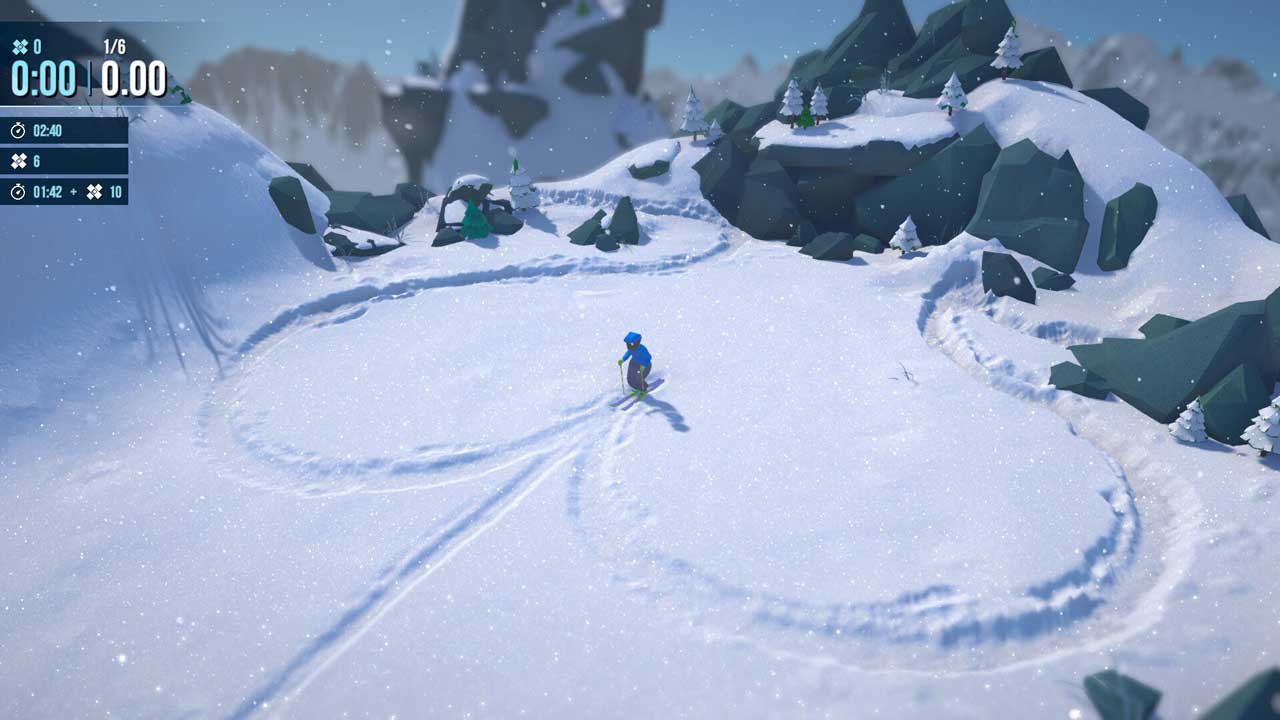 ในด้านกลไก การเล่นสกีนั้นค่อนข้างคล้ายกับจักรยานใน Lonely Mountains: Downhill แต่ในขณะเดียวกันก็มีความแตกต่างและซับซ้อนกว่ามาก ประการแรกคือไม่มีค่าความอดทนเพื่อเพิ่มความเร็ว แต่คุณสามารถเอียงตัวได้ไม่จำกัดเพื่อให้ได้ความเร็วสูงสุด ซึ่งอาจต้องแลกมากับการเสียความสามารถในการเลี้ยว โดยทั่วไปแล้ว การเลี้ยวเป็นกลไกที่ซับซ้อนกว่ามาก ซึ่งไม่ได้ขึ้นอยู่กับประเภทของสกีที่คุณกำลังเล่นเท่านั้น แต่ยังขึ้นอยู่กับว่าคุณเอนตัวไปข้างหน้ามากแค่ไหน คุณเบรกมากแค่ไหน ความเร็วที่คุณเคลื่อนที่ และความลึกของหิมะที่คุณกำลังเล่นอยู่