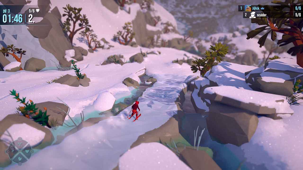 เพียงฟีเจอร์นี้เพียงอย่างเดียวก็ทำให้การควบคุมสกีเป็นเรื่องง่ายขึ้น แต่ในขณะเดียวกันก็ให้ความรู้สึกที่แตกต่างกันอย่างมาก ยิ่งไปกว่านั้น คุณยังสามารถเลี้ยวและกลับได้ตลอดเวลา ทำท่าผาดโผนระหว่างการกระโดด ขี่บนน้ำ และปรับระยะการกระโดดของคุณได้โดยการเปิดสกีเพื่อให้ไถลได้มากขึ้นหรือปิดสกีเพื่อให้ตกลงมาได้เร็วขึ้น และแน่นอนว่ายังมีพื้นผิวที่เป็นน้ำแข็งอีกด้วย