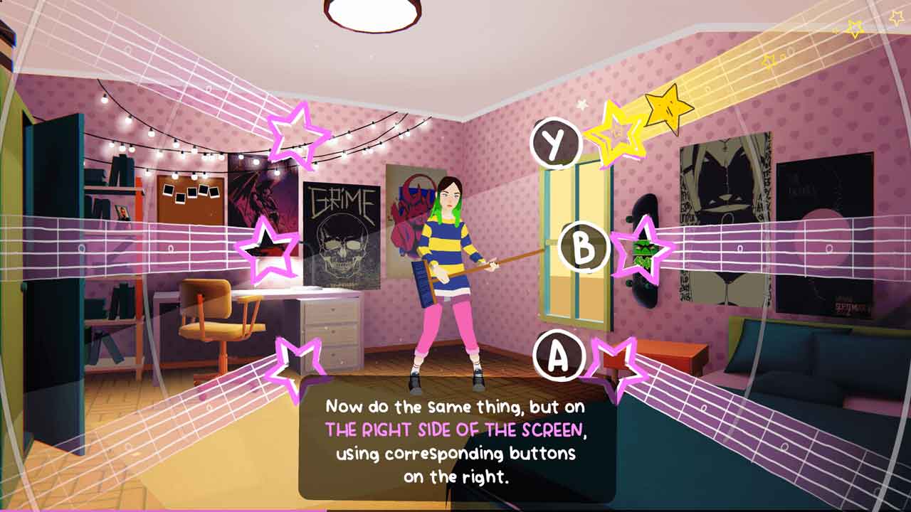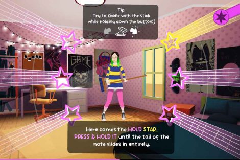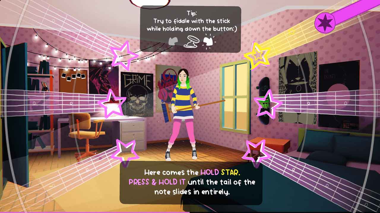 ผู้เล่นจะสวมบทบาทเป็น Astrid และรู้สึกได้ถึงความจริงที่ว่าเมื่อเรื่องราวดำเนินไป Astrid ได้ตระหนักถึงพรสวรรค์ของเธอและได้รับความมั่นใจในด้านนี้ แอสทริดเริ่มเล่นกีตาร์โดยใช้ไม้กวาดและค่อยๆ เติบโตทั้งอายุและทักษะ จนกระทั่งในที่สุดเธอก็ได้เริ่มแสดงในสถานที่ใหญ่ๆ แต่สิ่งที่น่าสนใจก็คือ เมื่อแอสทริดเติบโตและพัฒนาขึ้น และการเล่นจังหวะที่แตกต่างกันกับกีตาร์ คุณก็จะกลายเป็นผู้เชี่ยวชาญในแนวเพลงประเภทนี้ ในบางส่วนของเรื่องราว บางครั้งคุณเข้าสู่เวทีการแสดงดนตรี ซึ่งคุณต้องแสดงความคืบหน้าของทักษะการเล่นกีตาร์ของคุณโดยกดปุ่มที่ต้องการ ในกรณีเหล่านี้ โน้ตดนตรีทางด้านขวาและด้านซ้ายของหน้าจอจะเคลื่อนที่ไปตามเส้นทางหกเส้นทางที่กระจายเป็นวงกลมที่มีสัญลักษณ์รูปดาว และคุณต้องกดปุ่มที่เกี่ยวข้องในเวลาที่เหมาะสมตามสัญลักษณ์โน้ต
