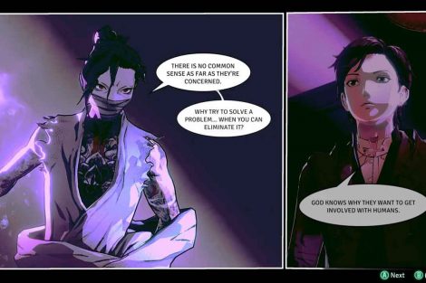 แม้ว่าเรื่องราวจะตั้งอยู่ในเมืองไซเบอร์พังค์สไตล์จีน แต่เนื้อเรื่องก็เป็นไปตามตำนานคธูลู สภาพแวดล้อมของโลกและเรื่องราวของเกมนี้น่าสนใจมากสำหรับฉัน เรื่องราวดำเนินไปในรูปแบบของนิยายภาพ เช่น หลังจากโต้ตอบกับ NPC บางครั้งหน้าจอสีดำจะปรากฏขึ้นแล้วเปลี่ยนเป็นภาพวาดแนวตั้งสองภาพทางด้านซ้าย และขวา และกล่องโต้ตอบตรงกลาง ตัวละครหลักสองตัวของเกมชื่อ Doe และ Gram มีความรอบคอบและสอดคล้องกับชั้นโลกทัศน์ภายในและภายนอก โดซึ่งเป็นนักสืบเอกชนและนักสืบเป็นตัวแทนของคนธรรมดาในเมือง ในขณะที่แกรมนักบวชเป็นตัวแทนของส่วนที่ล่มสลายของเมือง ในตอนนี้ ความประทับใจของฉันคือเขาเป็นคนที่เอาแต่ใจมากและมีบุคลิกอ่อนแอในหลายๆ เรื่อง แต่เมื่อพูดถึงการค้นคว้าและติดตามลีด เขามีความคิดเห็นของตัวเองและเข้มแข็งมาก