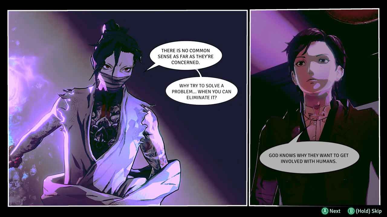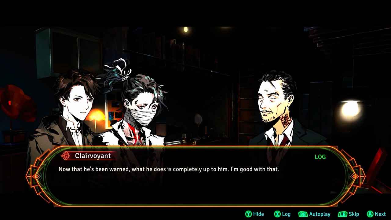 แม้ว่าเรื่องราวจะตั้งอยู่ในเมืองไซเบอร์พังค์สไตล์จีน แต่เนื้อเรื่องก็เป็นไปตามตำนานคธูลู สภาพแวดล้อมของโลกและเรื่องราวของเกมนี้น่าสนใจมากสำหรับฉัน เรื่องราวดำเนินไปในรูปแบบของนิยายภาพ เช่น หลังจากโต้ตอบกับ NPC บางครั้งหน้าจอสีดำจะปรากฏขึ้นแล้วเปลี่ยนเป็นภาพวาดแนวตั้งสองภาพทางด้านซ้าย และขวา และกล่องโต้ตอบตรงกลาง ตัวละครหลักสองตัวของเกมชื่อ Doe และ Gram มีความรอบคอบและสอดคล้องกับชั้นโลกทัศน์ภายในและภายนอก โดซึ่งเป็นนักสืบเอกชนและนักสืบเป็นตัวแทนของคนธรรมดาในเมือง ในขณะที่แกรมนักบวชเป็นตัวแทนของส่วนที่ล่มสลายของเมือง ในตอนนี้ ความประทับใจของฉันคือเขาเป็นคนที่เอาแต่ใจมากและมีบุคลิกอ่อนแอในหลายๆ เรื่อง แต่เมื่อพูดถึงการค้นคว้าและติดตามลีด เขามีความคิดเห็นของตัวเองและเข้มแข็งมาก