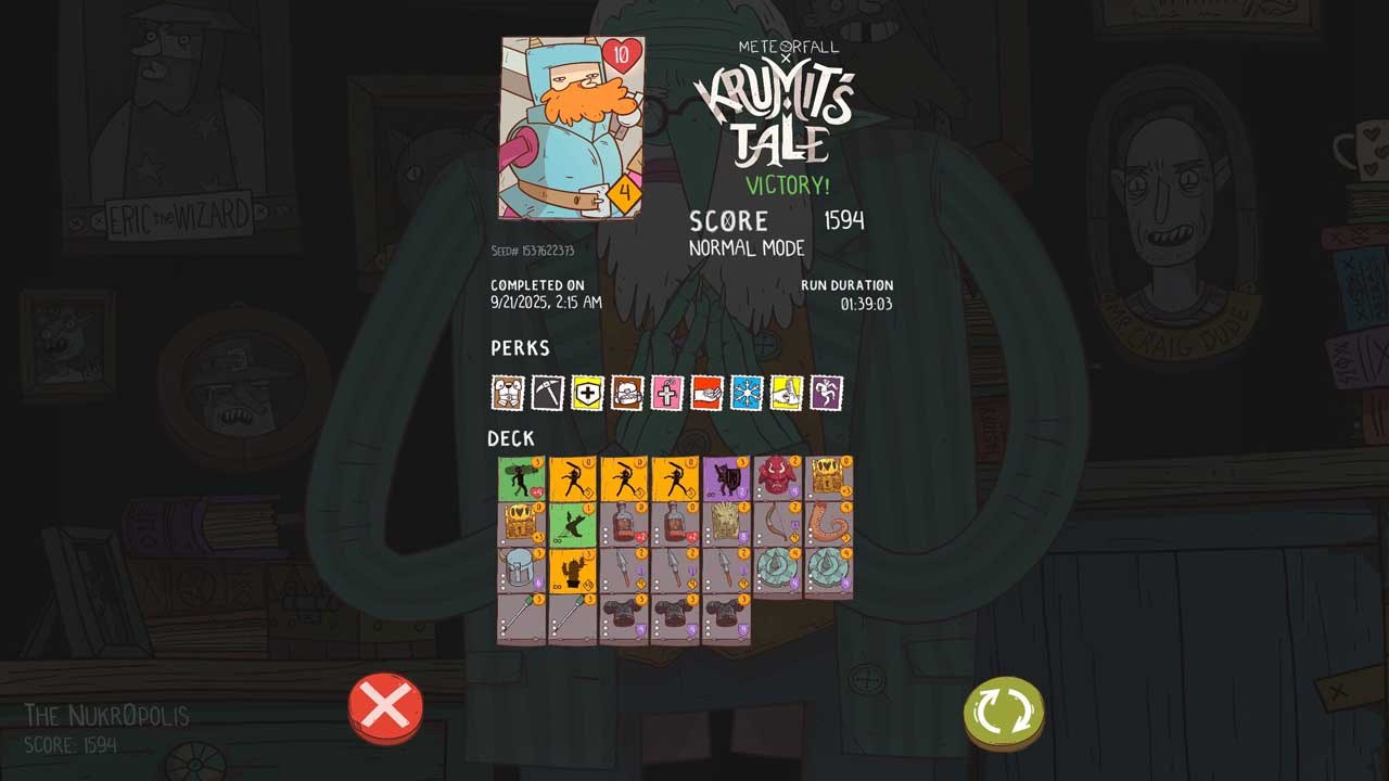 Meteorfall: Krumit’s Tale พัฒนาโดย Slothwerks และเผยแพร่ร่วมกับ indienova เป็นเกมสร้างเด็คโร้กไลค์ที่นำเอากรอบเกมแนวนี้ที่คุ้นเคยมาแปลงโฉมให้กลายเป็นเกมที่มีเอกลักษณ์และน่าเล่น ตัวเกมต่อยอดจากรากฐานที่ Meteorfall: Journeys ได้สร้างไว้ก่อนหน้า แต่ยังคงไว้ซึ่งกลไกการแตะเพื่อโจมตีที่เรียบง่ายกว่าในเวอร์ชันมือถือดั้งเดิม ในเวอร์ชันนี้ ผู้เล่นจะได้พบกับการผสมผสานอันหลากหลายของการตัดสินใจเชิงกลยุทธ์ การสร้างเด็คแบบหลายชั้น และระบบดันเจี้ยนแบบตาราง 3×3 อันชาญฉลาด ซึ่งเพิ่มมิติใหม่ให้กับการต่อสู้และการจัดการทรัพยากร