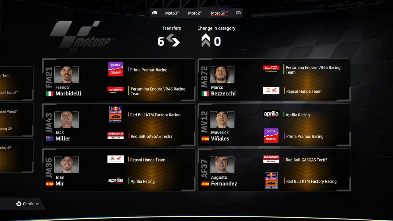 เวอร์ชันนี้แนะนำฟีเจอร์ตลาดไรเดอร์ใหม่ที่นักบิดสามารถเปลี่ยนทีมได้ แม้ว่านักแข่งบางคนจะไม่เข้าร่วมบางทีมเนื่องจากมีผู้สนับสนุน (เช่น Red Bull กับ Monster) ซึ่งฉันเดาว่ามันค่อนข้างสมจริง Yen เป็นหนึ่งในการใช้งานที่ดีที่สุดเท่าที่เคยมีมา และด้วยฟีเจอร์ที่ดีที่สุดของเกม นั่นคือ AI ที่ปรับเปลี่ยนได้ คุณมั่นใจได้ว่าจะมีการแข่งขันที่บ้าคลั่งและแตกต่างในทุก ๆ GP สิ่งที่เพิ่มเติมเข้ามาใน MotoGP 24 ก็คือฟีเจอร์ “Stewards” ใหม่ ซึ่งเป็นส่วนเสริมที่ยอดเยี่ยมสำหรับการแข่งแบบผู้เล่นเดี่ยว ผู้ช่วยนี้มีหน้าที่ตรวจสอบการแข่งขันและตรวจสอบ AI และพฤติกรรมของผู้เล่นในระหว่างการแข่งขัน