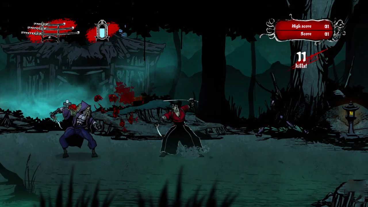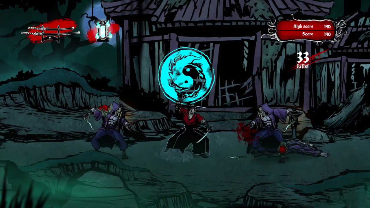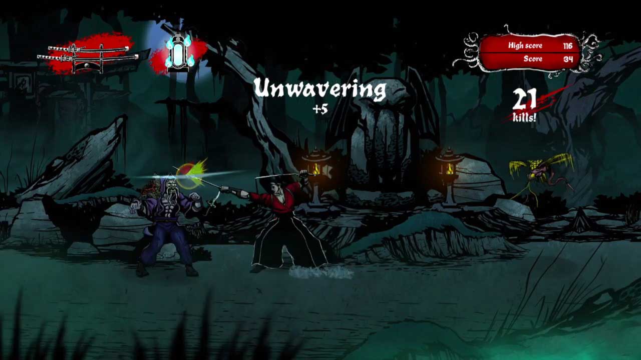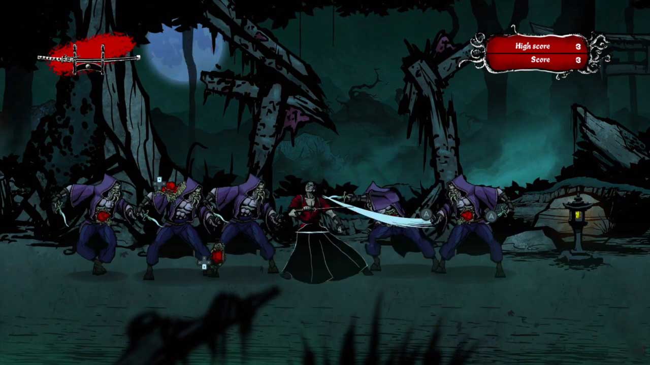 เรื่องราวของเกมนี้ทำให้คุณสวมบทบาทเป็นนักรบซามูไรชื่อ “มิยาโมโตะ มูซาชิ” ที่ถูกสาปและตกเป็นเหยื่อของสัตว์ประหลาดที่ถูกสร้างขึ้นเพื่อทำลายเขา การออกแบบและการตัดสินใจอย่างรวดเร็วจะกระตุ้นให้คุณฟื้นตัวทันทีหากคุณล้มเหลว สร้างทัศนคติแบบ “อีกครั้งหนึ่ง” ที่ทำให้คุณเริ่มต้นซ้ำแล้วซ้ำอีก คุณต้องเอาชีวิตรอดให้นานที่สุดและต่อสู้กับสัตว์ประหลาดที่ปรากฏทั้งสองด้านของหน้าจอ