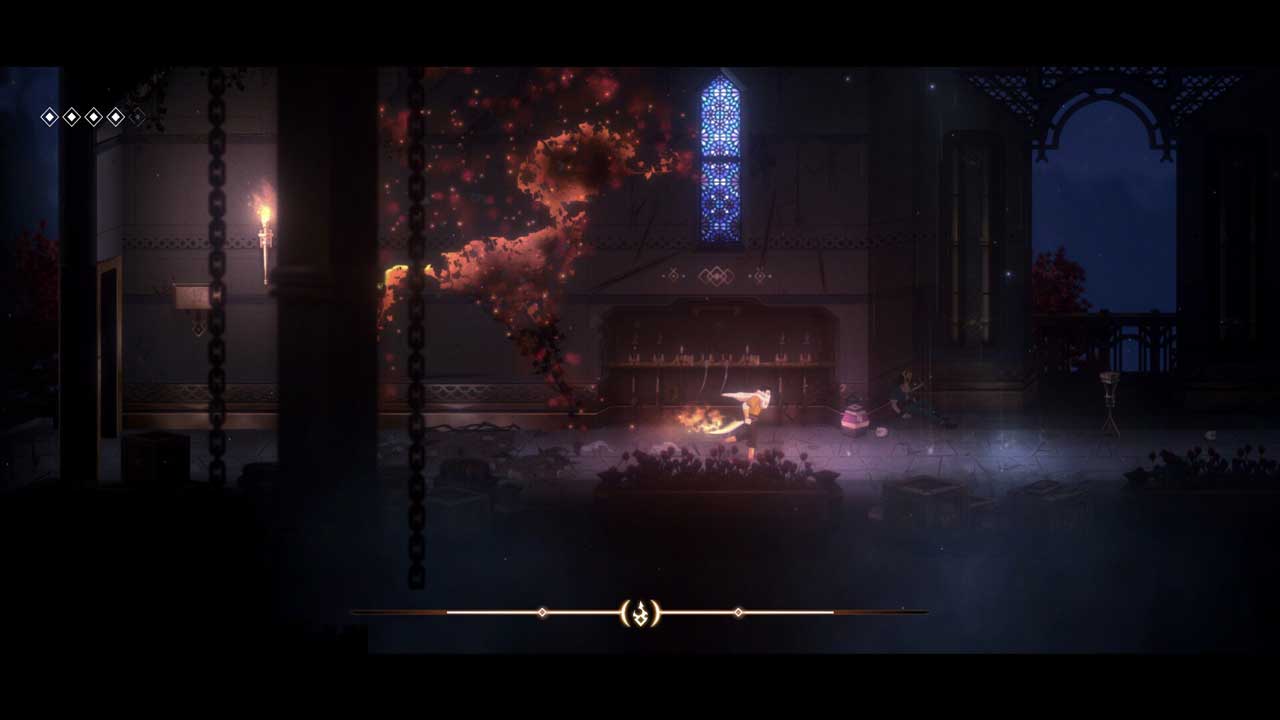 ในส่วนของการไขปริศนานั้นไฟก็มีความสำคัญเช่นกันไม่ซับซ้อนในตัวเองตราบใดที่เราสามารถรักษาความต่อเนื่องและการส่งผ่านของไฟแล้วกระโดดผ่านแพลตฟอร์มที่มีความยากปานกลางเพื่อค้นหาห้องหนึ่งและปลดล็อคใหม่ กลไกเปิด ในเกมโดยรวมมีองค์ประกอบในการแก้ปริศนาไม่มากนัก แต่ส่วนใหญ่จะกระจัดกระจายอยู่ระหว่างการต่อสู้ การใช้ไฟที่น่าประทับใจที่สุดคือตอนที่คบเพลิงดับลง และคุณต้องเอาชนะสัตว์ประหลาดโดยที่ไม่ปล่อยให้ไฟดับ ไม่เช่นนั้นแถบความคืบหน้าจะเต็มไปด้วยความมืดและคุณจะแพ้อย่างรวดเร็ว