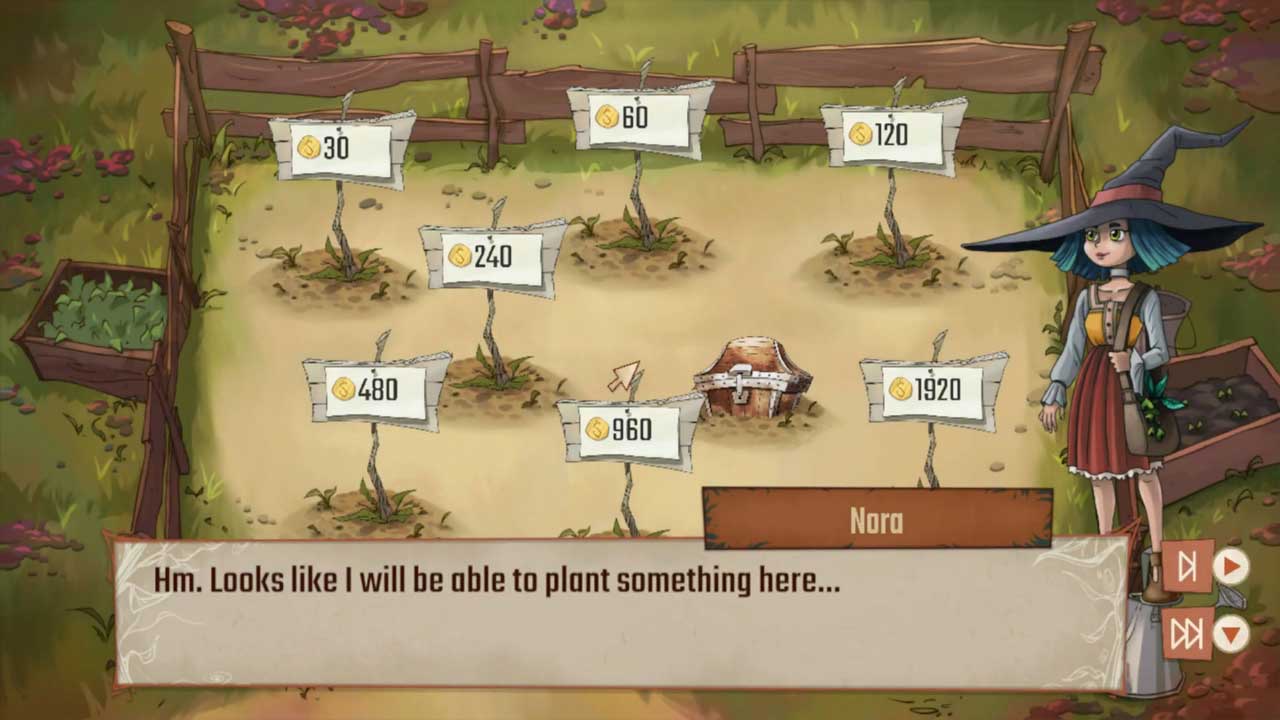 โนราห์มีมานาในปริมาณที่จำกัด และนี่คือสิ่งที่คุณจำเป็นต้องตรวจสอบนอกเหนือจากสุขภาพของพืชของคุณ คุณสามารถใช้ยาฟื้นฟูมานาได้ (ดังนั้นคุณจึงเก็บบางส่วนไว้ในสินค้าคงคลังหลังการประดิษฐ์) สินค้าคงคลังของคุณมีจำกัด ดังนั้นจึงต้องมีการจัดการสินค้าคงคลังเล็กน้อยในเกมนี้ คุณสามารถเพิ่มพื้นที่กระเป๋าได้ แต่จะมีเพียง 10 ช่องต่อครั้งเท่านั้น คุณต้องจ่ายเหรียญเพื่อปลดล็อคต้นไม้ใหม่เพื่อปลูกต้นไม้ใหม่ ยิ่งคุณปรุงยาได้มากเท่าไหร่ คุณก็จะยิ่งฝีมือดีขึ้นเท่านั้น และสูตรอาหารใหม่ๆ ก็จะถูกปลดล็อคในที่สุด นอกจากนี้ยังมีของน่าสะสม เช่น ใบไม้ ขนนก ผลไม้ และผีเสื้อ ซึ่งก็น่าจับตามองเช่นกัน