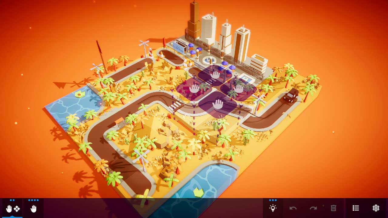 ความสามารถเหล่านี้เริ่มต้นง่ายมาก – ทำลายที่ดินและเพิ่มถนนที่ใช้งานได้ ความเรียบง่ายนี้อยู่ได้ไม่นาน ในไม่ช้า คุณจะมีพลังในการหยิบที่ดินและหมุนมัน หรือแม้แต่สลับพื้นที่ที่เลือกไว้เป็นอีกพื้นที่หนึ่ง หรือย้ายมันออกทั้งหมดแล้วย้ายไปยังตำแหน่งอื่น เมื่อรวมกับพลังเวทย์มนตร์ที่เหลือในดินแดนเวทย์มนตร์ของคุณ คุณจะมีตัวเลือกในการไขปริศนามากมาย มากเสียจนบางครั้งฉันลืมว่าสัญลักษณ์ใดแสดงถึงการกระทำใดเหล่านี้ อย่างไรก็ตาม คุณไม่สามารถใช้งานได้ตามต้องการ แต่ละเลเวลจะมีชุดเครื่องมือเฉพาะสำหรับการซ่อมแซมถนนของคุณ และนั่นคือทั้งหมดที่คุณต้องใช้ คุณควรใช้ทั้งหมดตามลำดับที่แสดง ซึ่งหมายความว่าโดยพื้นฐานแล้วมีวิธีแก้ปริศนาเพียงวิธีเดียวเท่านั้น และนั่นคือสิ่งที่ผู้พัฒนาตั้งใจไว้อย่างแน่นอน
