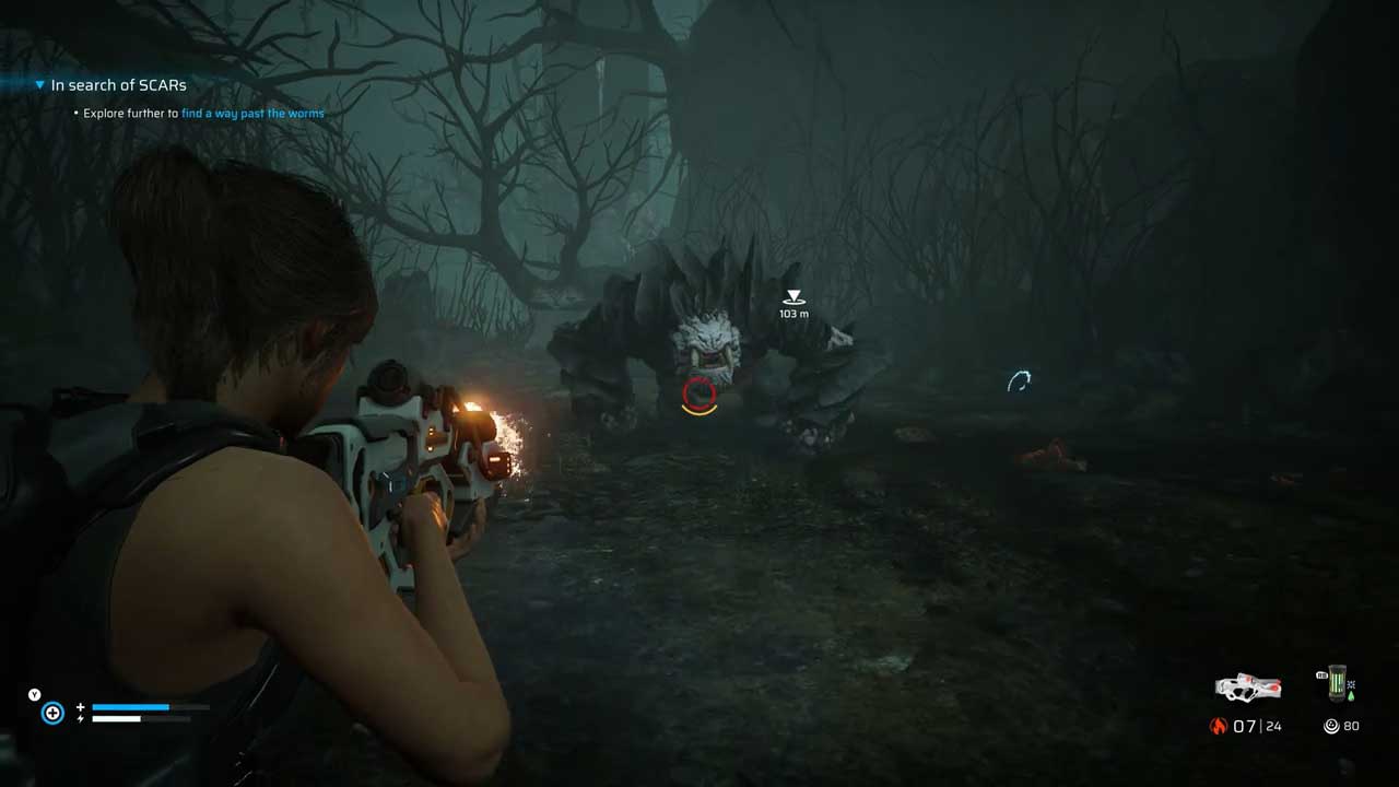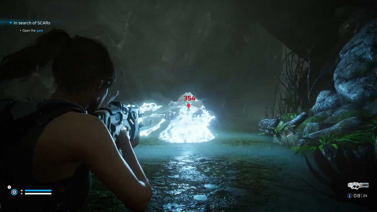 นี่คือจุดเริ่มต้นของ Scars Above ด้วยรูปแบบการเล่นที่ผสมผสานระหว่างการยิงของบุคคลที่สาม การสำรวจแสง และการไขปริศนา การยิงมีอาวุธหลัก 4 ประเภท (ไฟฟ้า ไฟ น้ำแข็ง และกรด) เพื่อให้ตรงกับจุดอ่อนของศัตรู ศัตรูบางตัวมีจุดอ่อนพื้นฐานที่จำเป็นต้องเปิดเผยพวกมันก่อน จากนั้นคุณสามารถยิงพวกมันเพื่อสร้างความเสียหายมหาศาลได้ คล้ายกับ Horizon Zero Dawn ในแง่นั้น