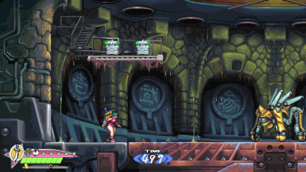 นอกจากดาบและคุซาริกามะ (เคียวที่คล้องโซ่) แล้ว ยังมีเครื่องมือสนุกๆ ให้ใช้อีกมากมาย ซึ่งแต่ละอย่างก็มีประโยชน์แตกต่างกันไป เป้าหมายโดยนัยเมื่อเล่นคือการผ่านด่านด้วยเครื่องมือที่ไม่ได้ใช้ในช่องเก็บของของคุณ เพื่อให้เพิ่มเข้าไปในคอลเลกชันของคุณและพร้อมสำหรับการซื้อในการเล่นผ่านครั้งต่อๆ ไป รูปแบบการเล่นนั้นน่าตื่นเต้นแม้ในส่วนของแพลตฟอร์ม คุณจะถูกนำไปยังหน้าจอใหม่ๆ ที่มักจะดูเหมือนผ่านไม่ได้เมื่อเห็นแวบแรก แต่เมื่อความกลัวเริ่มแรกบรรเทาลง ก็ชัดเจนว่าด้วยเทคนิคและการเว้นระยะห่างที่เหมาะสม ความท้าทายต่างๆ ก็สามารถเอาชนะได้อย่างสมบูรณ์