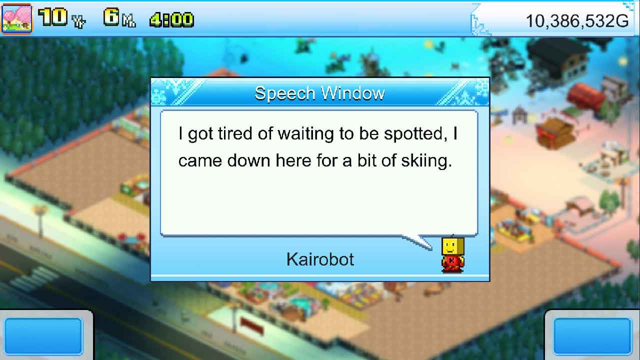 จากรอบที่สอง ฉันไม่คิดว่ามีอะไรผิดปกติกับการจริงจัง และฉันไม่คิดว่าคุณจะต้องบังคับตัวเองให้ทำอะไรในรอบแรก โดยรวมแล้ว รูปแบบการเล่นเป็นการจำลองเชิงพาณิชย์และไม่แตกต่างจากเกมอื่นๆ ของ Kairosoft . ไม่มี มันก็จะซ้ำซากเล็กน้อยในตอนท้ายของเกม