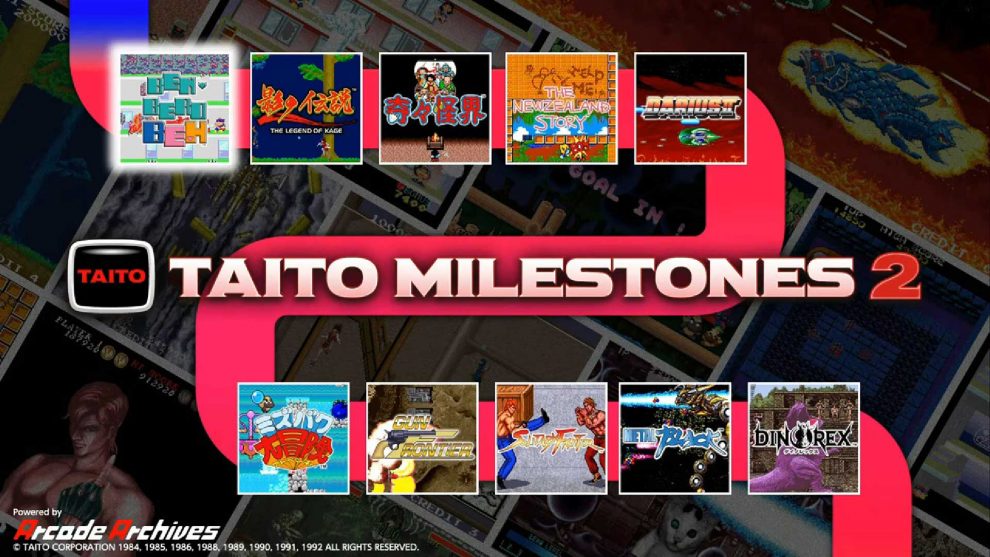 พัฒนาโดยผู้พัฒนาและผู้จัดพิมพ์ Taito ที่มีชื่อเสียง Taito Milestones 2 กลับมาอีกครั้งในแคตตาล็อกของเกมบางเกมจากยุค 80 และต้นยุค 90 เพื่อแสดงทุกสิ่งที่ทำเมื่อเกมอาร์เคดครองตำแหน่งสูงสุด เวอร์ชันก่อนหน้าของซีรีส์นี้เปิดตัวในปี 2022 และแสดงประสิทธิภาพโดยเฉลี่ย ในเวอร์ชันใหม่นี้ มีเกมคอมโบที่มีประโยชน์ถึง 10 เกม รวมถึง Darius III, Liquid Kids และ Dinorex ส่วนใหญ่มีรูปแบบการเล่นที่ง่ายมาก และต้องการเพียงปุ่มควบคุมเพียงสองปุ่ม จากนั้นทุกอย่างก็เหมือนกับการเล่นเกมของเกาหลี