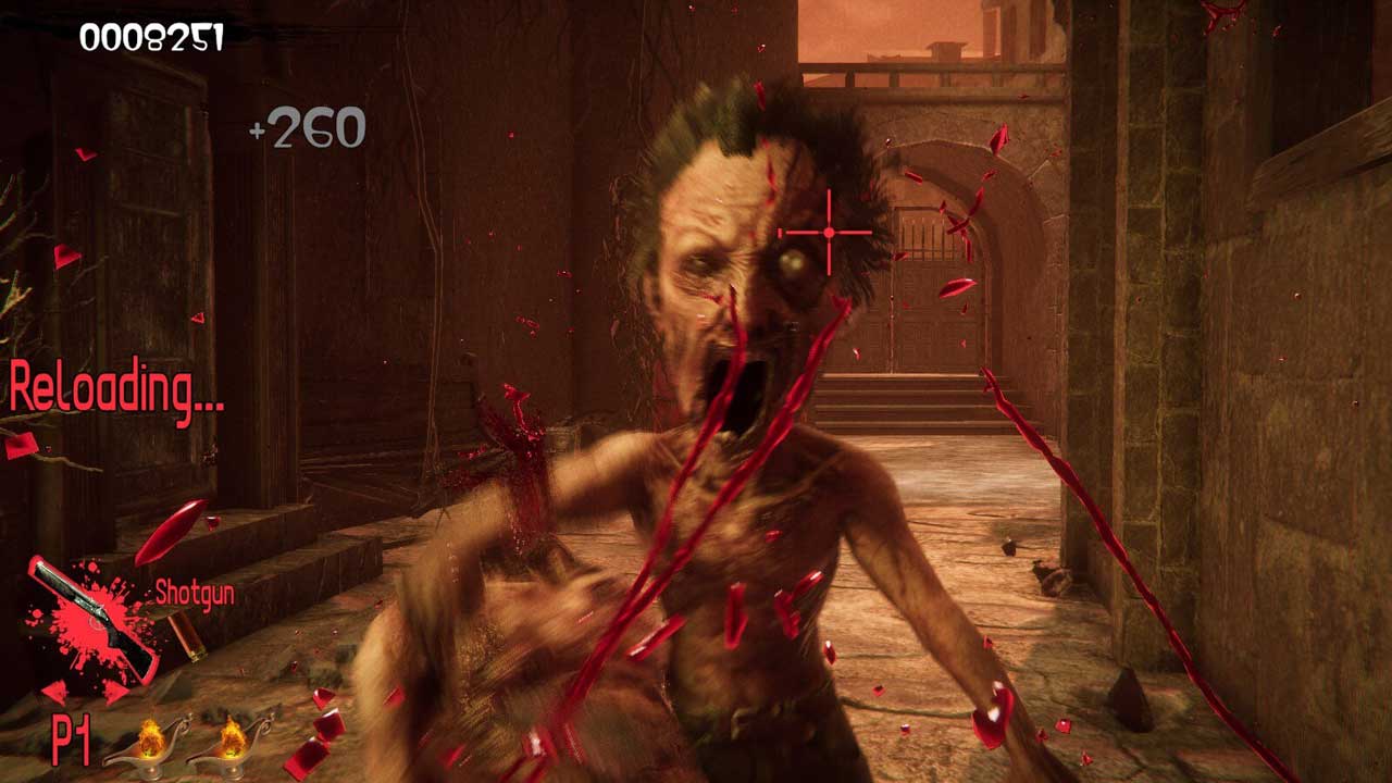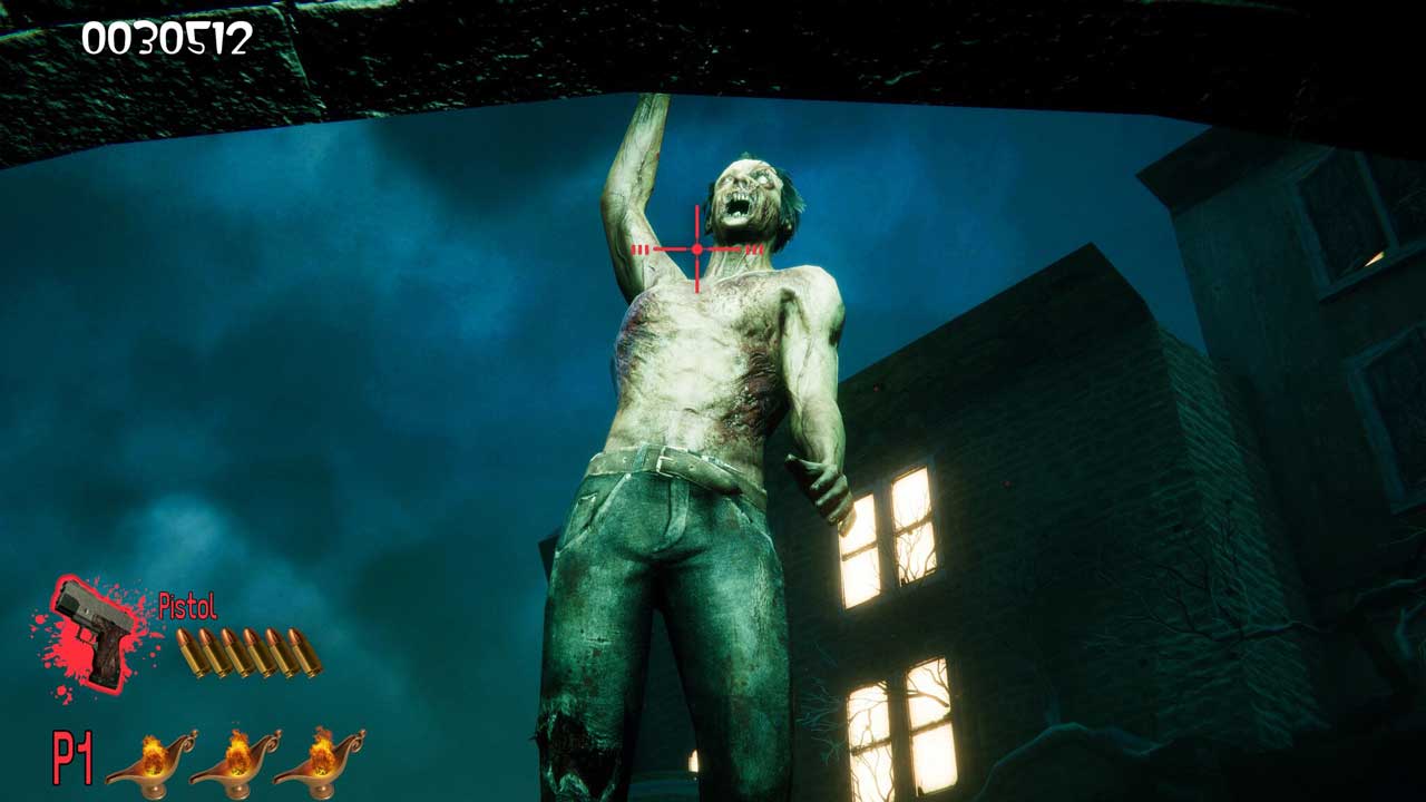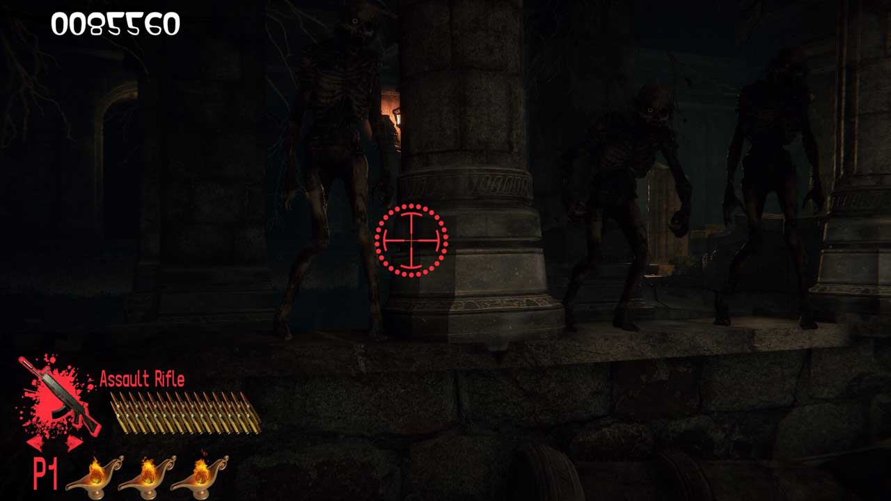 การเล่นปืนให้ความรู้สึกเหมือนที่คุณคาดหวังจากเกม House of the Dead ยกเว้นเอฟเฟกต์ตุ๊กตาผ้าและเอฟเฟกต์การเผาไหม้แปลกๆ เมื่อคุณฆ่าศัตรู ผมชอบแอนิเมชันแบบเดิมๆ ที่ปรุงแต่งขึ้นมามากกว่า ที่พวกมันจะตกลงมาและละลายกลายเป็นสระน้ำสีเขียว อันที่จริง เกมยิงปืนรางพวกนี้เป็นแนวที่ตายไปแล้ว พวกมันเล่นได้ดีเฉพาะในอาร์เคดที่สามารถใช้ปืนแสงได้
