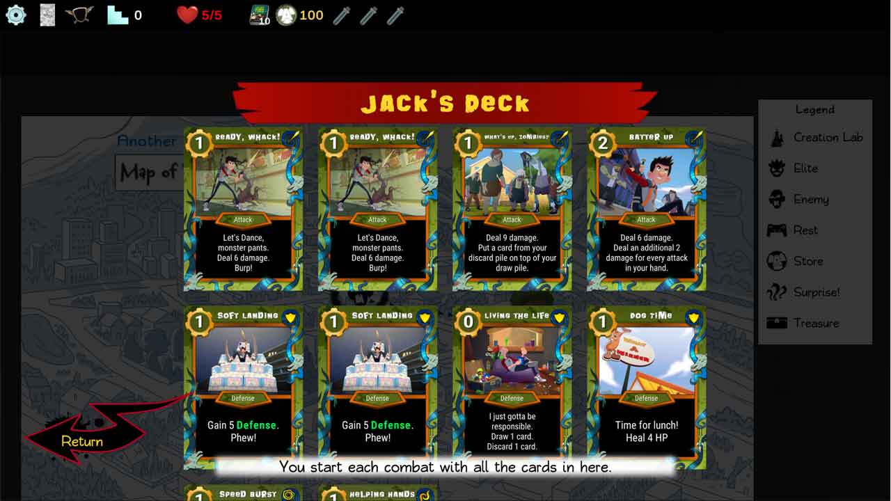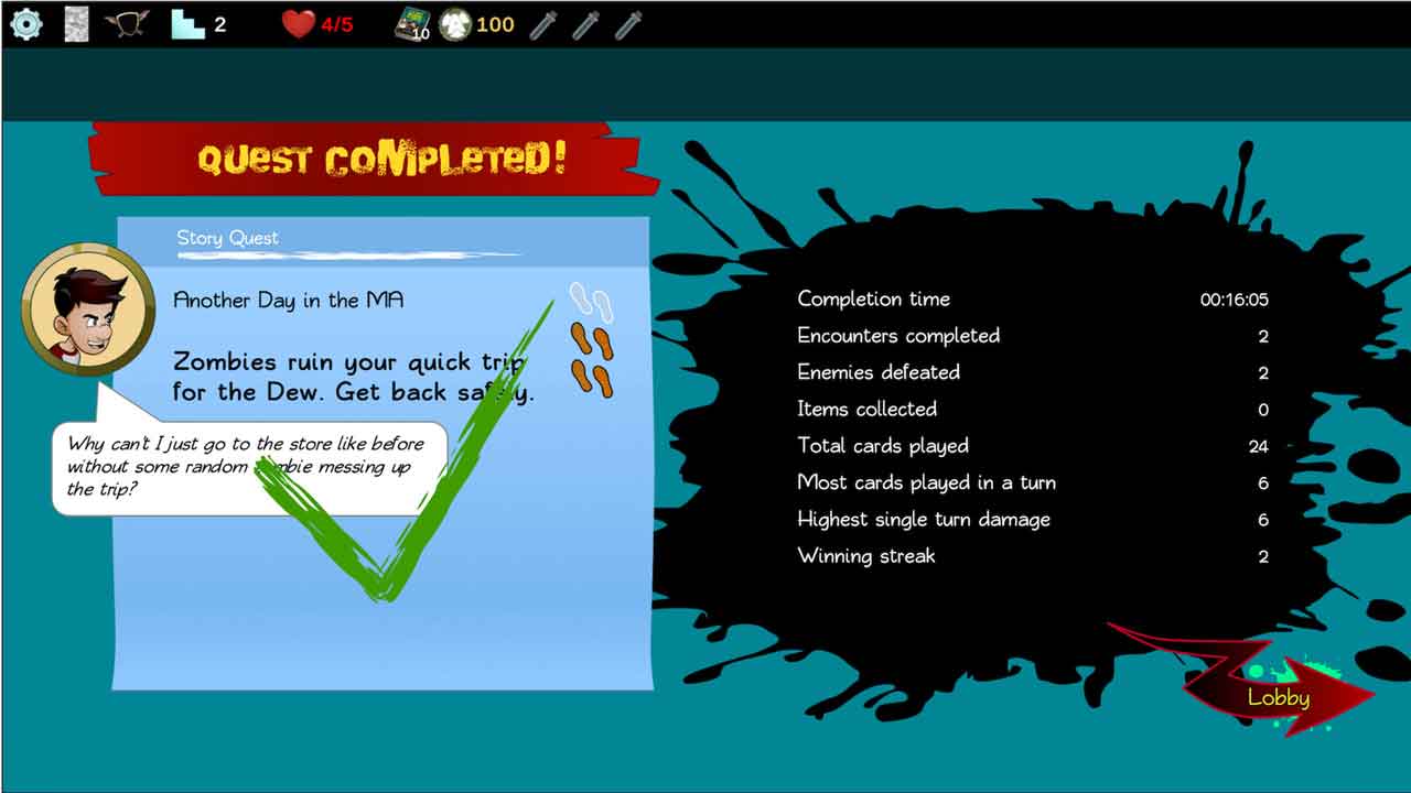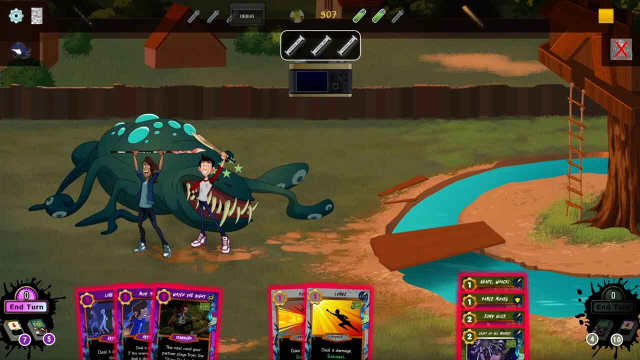 ตัวละครแต่ละตัวในเกมมีเพียงห้าหัวใจที่แสดงถึงสุขภาพของพวกเขา ซึ่งคุณจะต้องใช้ประโยชน์ให้ดีที่สุด คุณเลือกเครื่องมือ อาวุธ และวัสดุสิ้นเปลืองสำหรับภารกิจของคุณในส่วน Armory ซึ่งอาวุธแต่ละชิ้นจะสอดคล้องกับการ์ดที่เลือก ในตอนท้ายของภารกิจ คุณจะพบกับบอส ซึ่งส่วนใหญ่แล้วอาจเป็นเรื่องยากมาก แต่ด้วยการทำงานเป็นทีม คุณสามารถทำลายพวกเขาได้อย่างง่ายดาย ศิลปะและรูปแบบการ์ตูนของเกมนั้นน่าชื่นชม และแทนที่จะใช้แนวคิดสยองขวัญที่ได้มาจากการโจมตีของซอมบี้ มันแสดงออกถึงเรื่องราวในรูปแบบที่ตลกขบขัน เพลงมีจังหวะและเข้ากับฉากแอ็คชั่นผจญภัยได้ดี