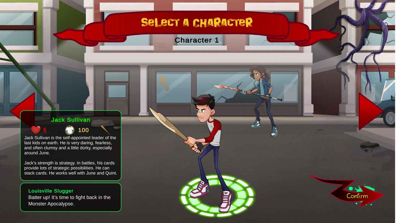Jack Sullivan มีบุคลิกที่กล้าหาญและกล้าหาญ แม้ว่าเขาจะอวดดีเล็กน้อย แต่เขาทำงานเป็นทีมได้ดีมาก และต่อสู้หนักขึ้นเมื่อสุขภาพของเขาต่ำ จูน เดล โทโรเชี่ยวชาญในการกระทืบซอมบี้และฆ่าสัตว์ประหลาดร้าย และเธอก็สนุกกับการทำมัน เขาสามารถอ่านใจของซอมบี้และสัตว์ประหลาดได้อย่างง่ายดาย และเชี่ยวชาญในการหลบเลี่ยงการโจมตี Quint Baker เป็นลูกชายของนักประดิษฐ์อัจฉริยะซึ่งสิ่งประดิษฐ์ของเขากลายเป็นอุปกรณ์ เขามีทักษะในการปรับปรุงอุปกรณ์การต่อสู้และมีความสามารถในการบินและสามารถเลือกอุปกรณ์ของเขาได้ทันที เดิร์ก ซาเวจเป็นคนแข็งแกร่งที่ทำตัวเหมือนพายุทอร์นาโดเมื่อต่อสู้กับสัตว์ประหลาด เขาสามารถปกป้องใครก็ได้ในการต่อสู้และมีทักษะการโจมตีที่รุนแรงมาก ทั้งสี่อาศัยอยู่ในปราสาทต้นไม้ที่แปลกประหลาดและโอ่อ่า และต้องต่อสู้เพื่อเอาชีวิตรอดในโลกของสัตว์ประหลาดและซอมบี้