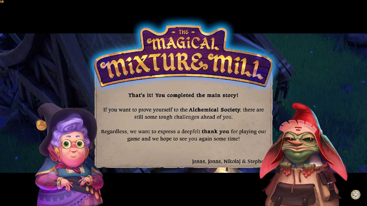 เกมนี้ให้คุณเปิดร้านขายยา โดยมีเป้าหมายที่จะตอบสนองความต้องการของลูกค้าของคุณ ในขณะเดียวกันก็เตรียมเงินในกระเป๋าของคุณด้วยทองคำสูงสุด จุดดึงดูดหลักของ The Magical Mixture Mill นอกเหนือจากเอฟเฟ็กต์ภาพที่แสนสบายแล้ว ก็คือระบบอัตโนมัติ อย่างไรก็ตาม ขนาดเริ่มต้นของร้านค้าของคุณทำให้ยากเกินความจำเป็น มีการเปรียบเทียบที่ชัดเจนกับเกม Potionomics ในทั้งสองกรณี คุณเป็นผู้ผลิตยาที่ไม่มีประสบการณ์และพยายามหาเลี้ยงชีพด้วยการผลิตยาและขายยาให้กับนักผจญภัย ตัวกลไกเองไม่ได้มีเอกลักษณ์หรือคุ้นเคยมากนัก มีอะไรใหม่คือการผสมผสานที่ดีระหว่างประเภทของระบบอัตโนมัติ พบกับร้านค้า พบกับการทำฟาร์มทรัพยากร และคิวการผลิต